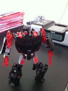 And here he is next to “Break Down” (Wal-Mart exclusive Breakaway) – at first, when it was just going to be these two, the size difference was fine, but now that I’ve decided to do the entire team and possible Gesalt combination, he just wont’ work, he’s too big.