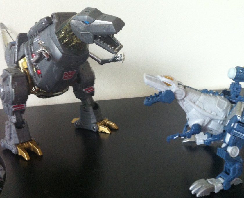 Finally, here’s a size comparison with MP Grimlock – T-Rex vs T-Rex style.