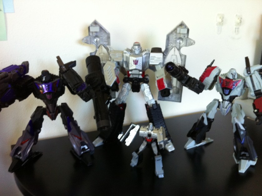 United Megatron is in the back there.  There’s also the United Tokyo Toy Show Black Megatron, Generations “Cybertronian” Megatron and Legends Megatron.