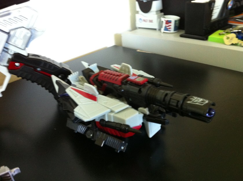 I painted over the obnoxious orange cap on the tip of the barrel.  Legends Megatron is all kinds of awesome.  He’s easily one of the better figures in the line, on par with Prowl, and my favorite part is that he takes some designs from the All Hail Megatron IDW series depiction.