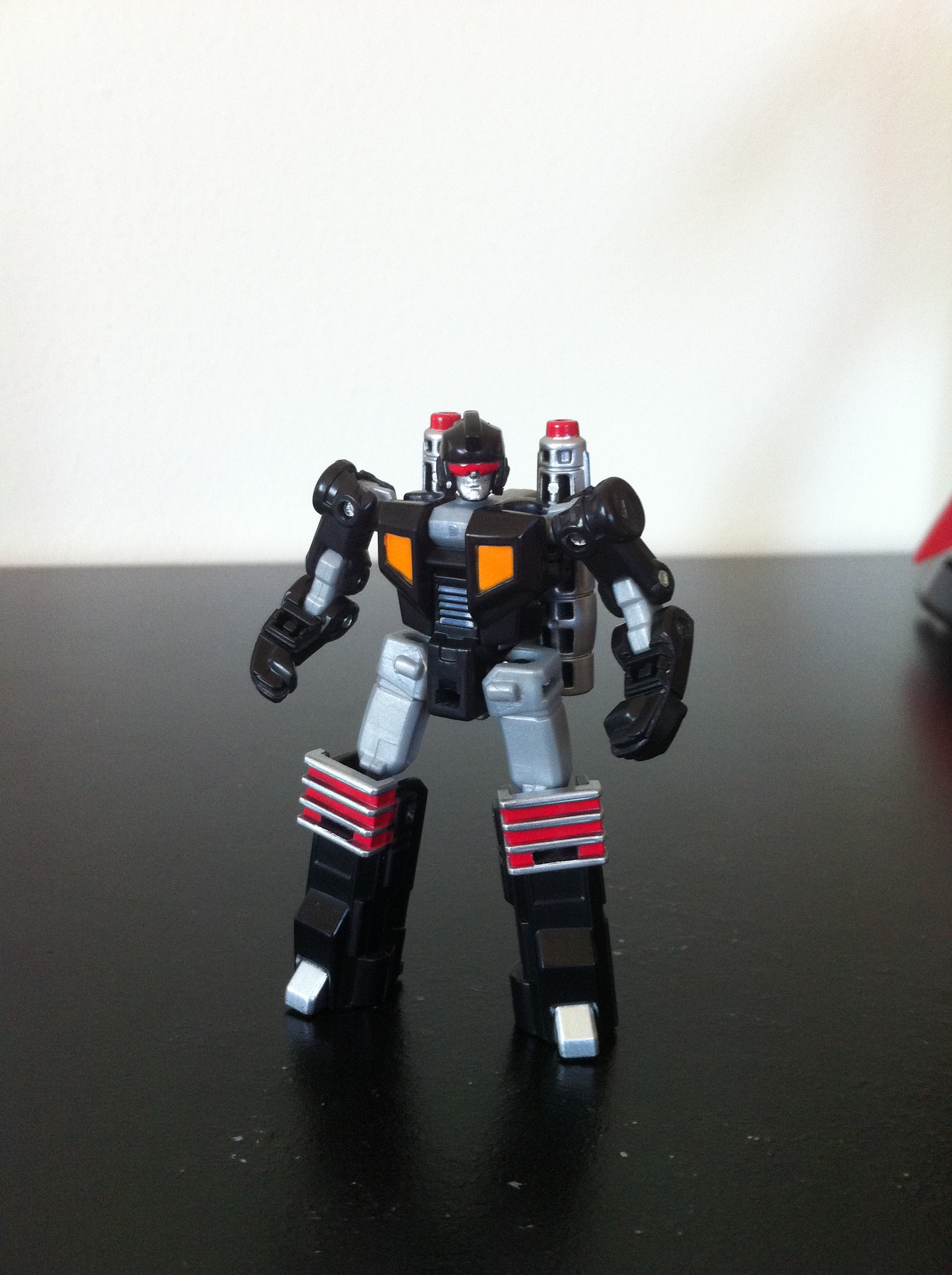 Hasbro removed a few paint aps to make it “resemble the G1 toy more”.  Which is just poppycock.  Obviously they wanted to save on cost.  So unfortunately his rear boosters are just plain orange.