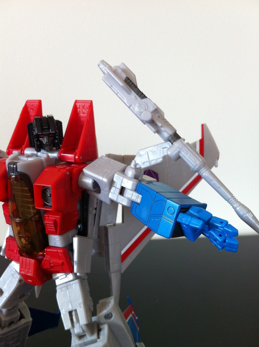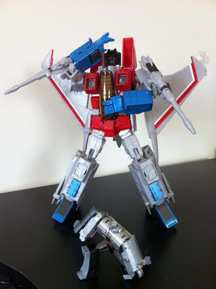So there we go. Over all, StarScream is amazing, and I really like the changes they made to the mold. The only down side I’ve noticed is that the center chest assembly doesn’t really lock into place. Kind of an odd issue to have, but I can over look it.