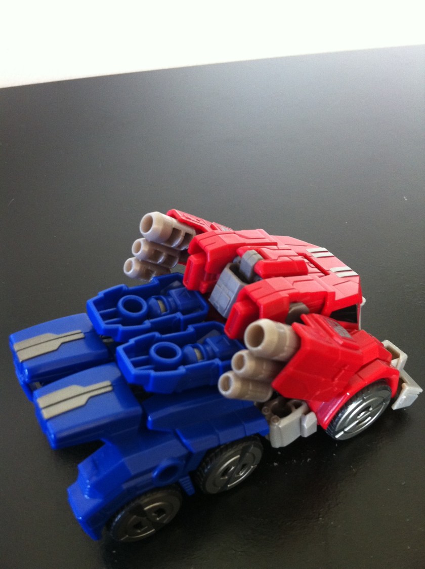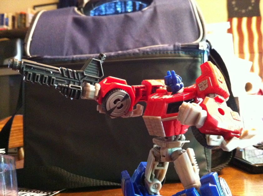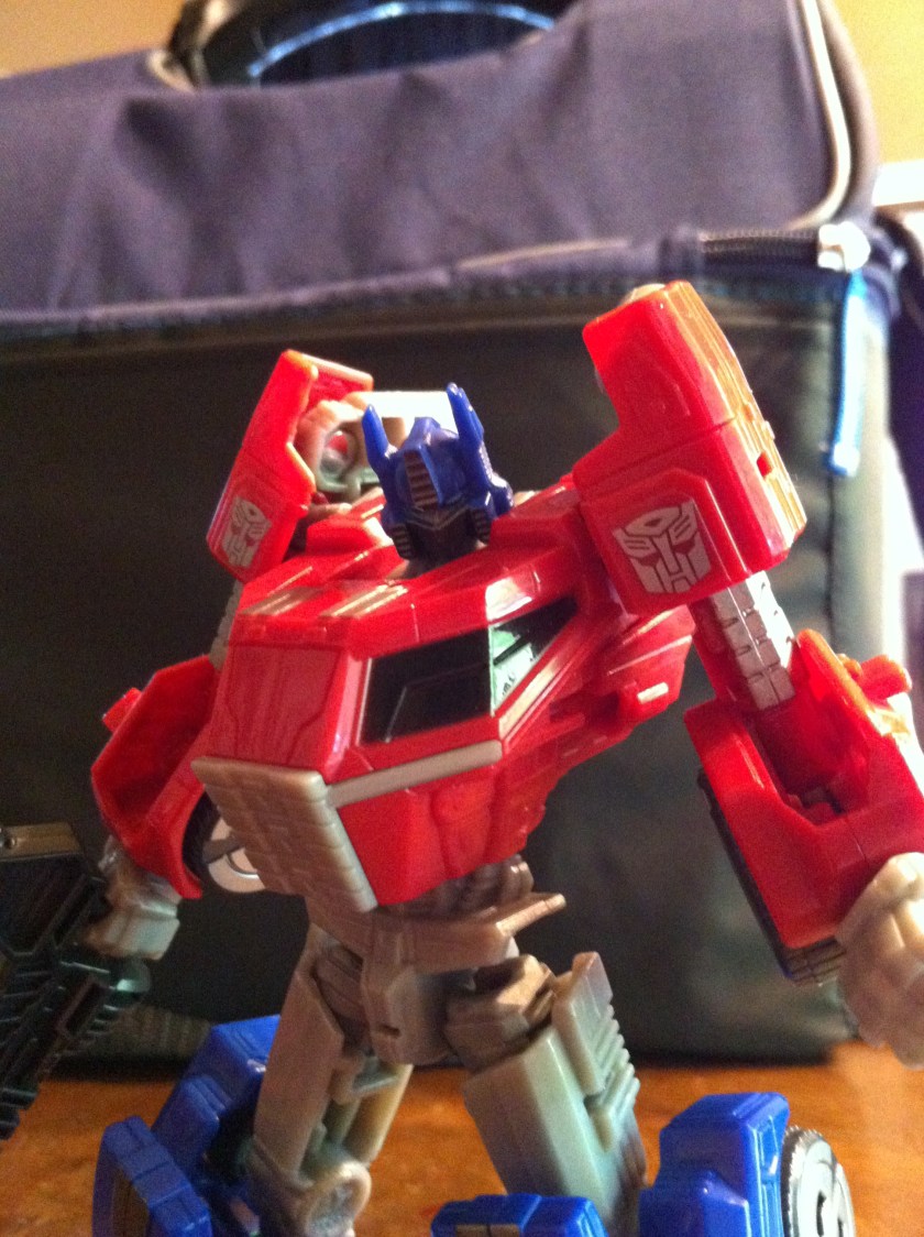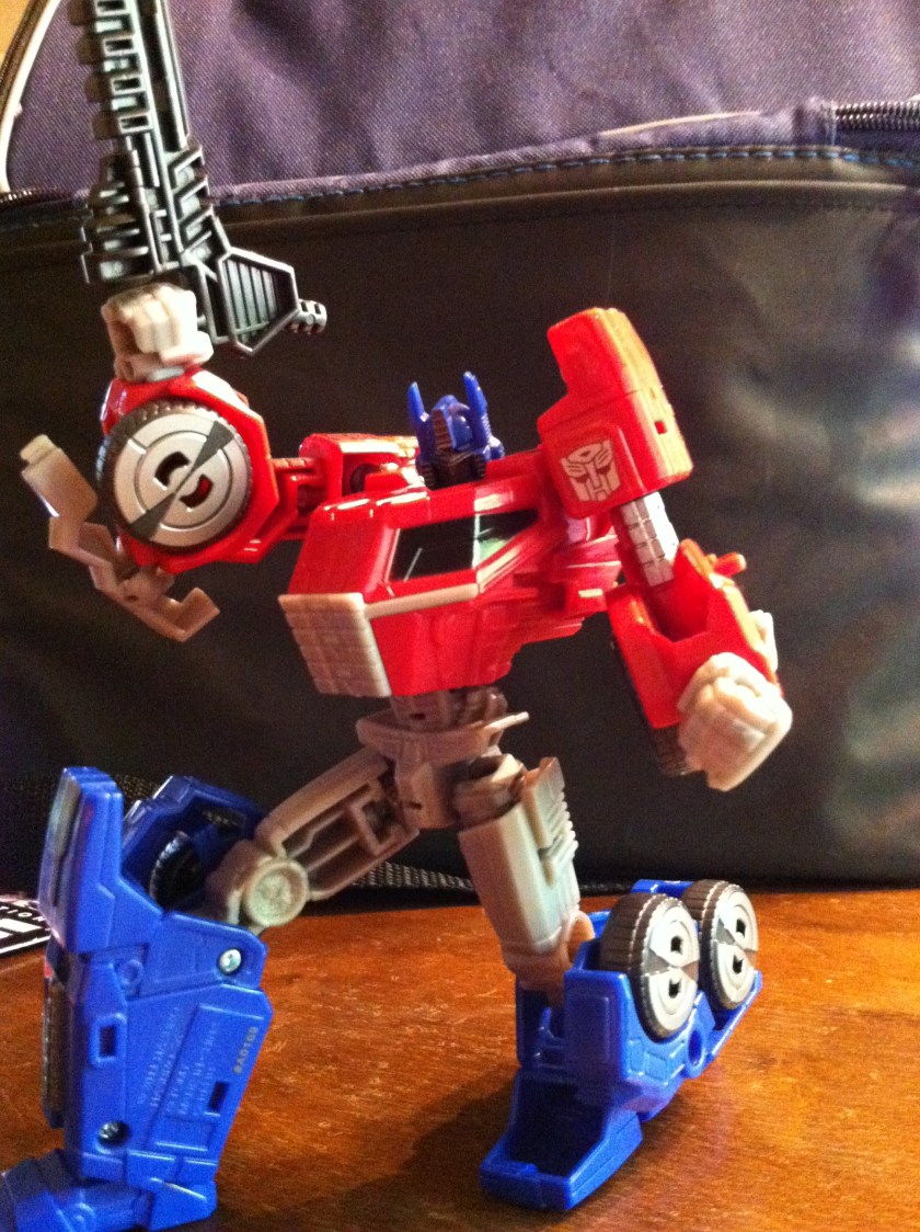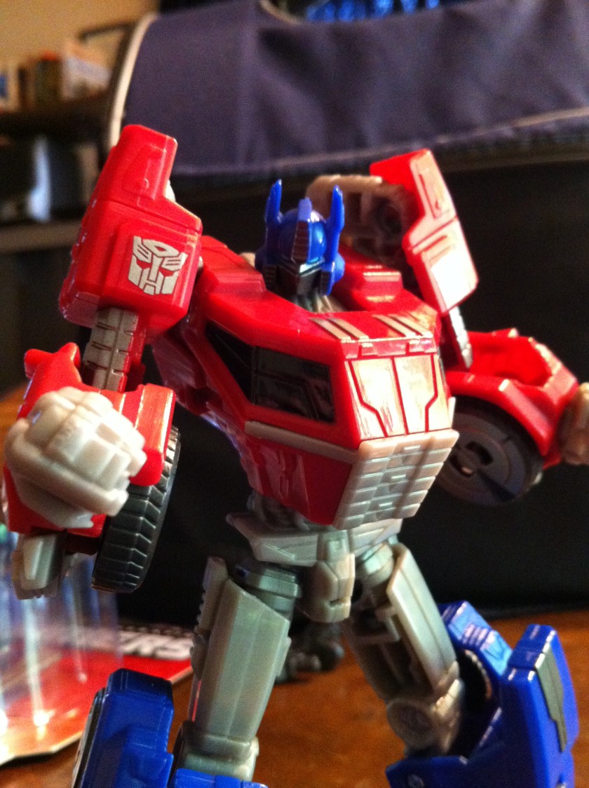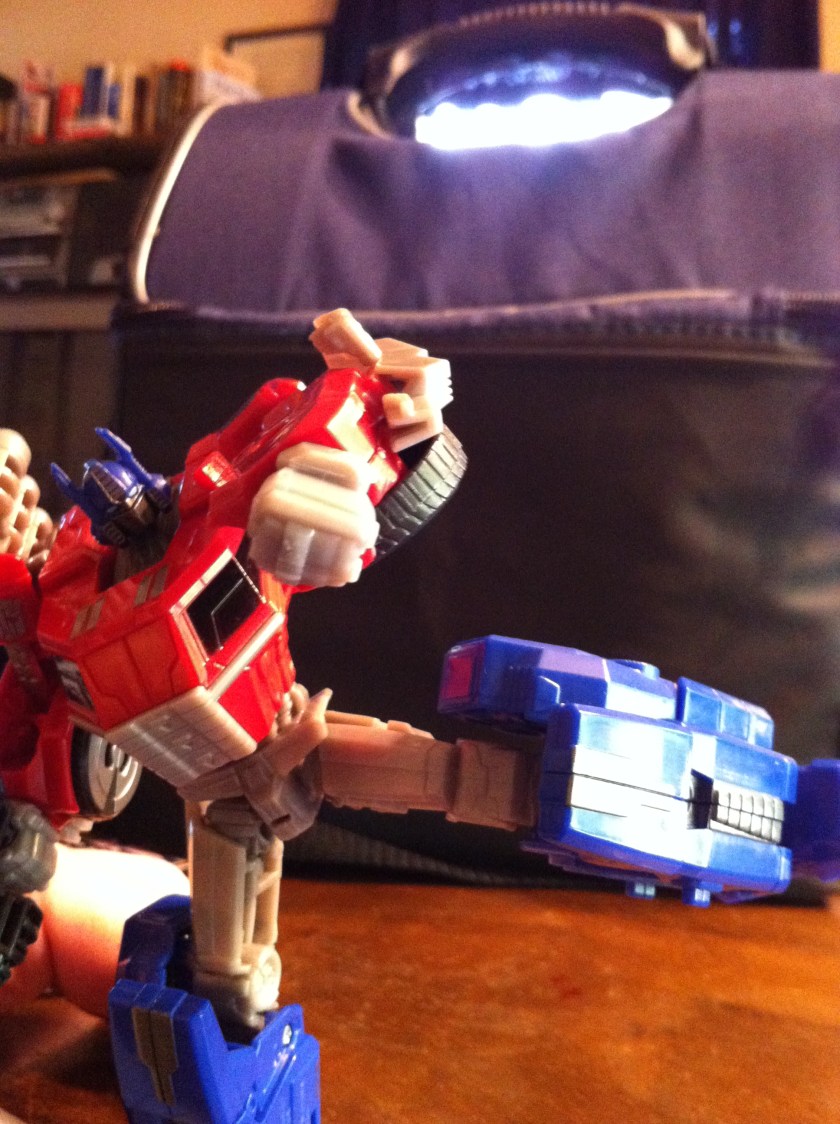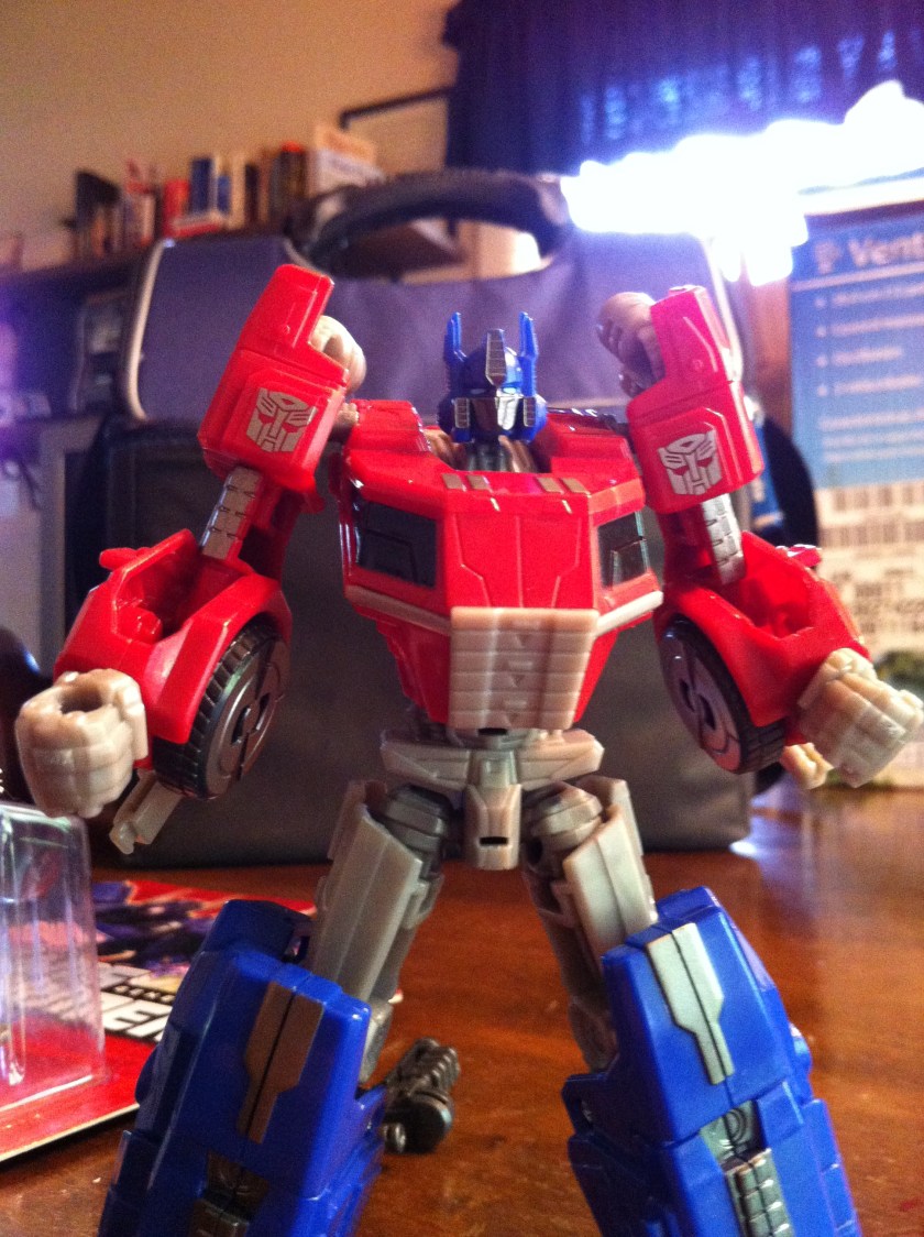 So, yeah. For as much grief as this figure gets, I ADORE him. He’s a fun take on Optimus Prime featuring the updated look from Fall of Cybertron. His transformation is infinitely easier than his predecessor, and again, yes, he should have been a voyager, but looking past that, I am VERY happy to have him in my collection.
