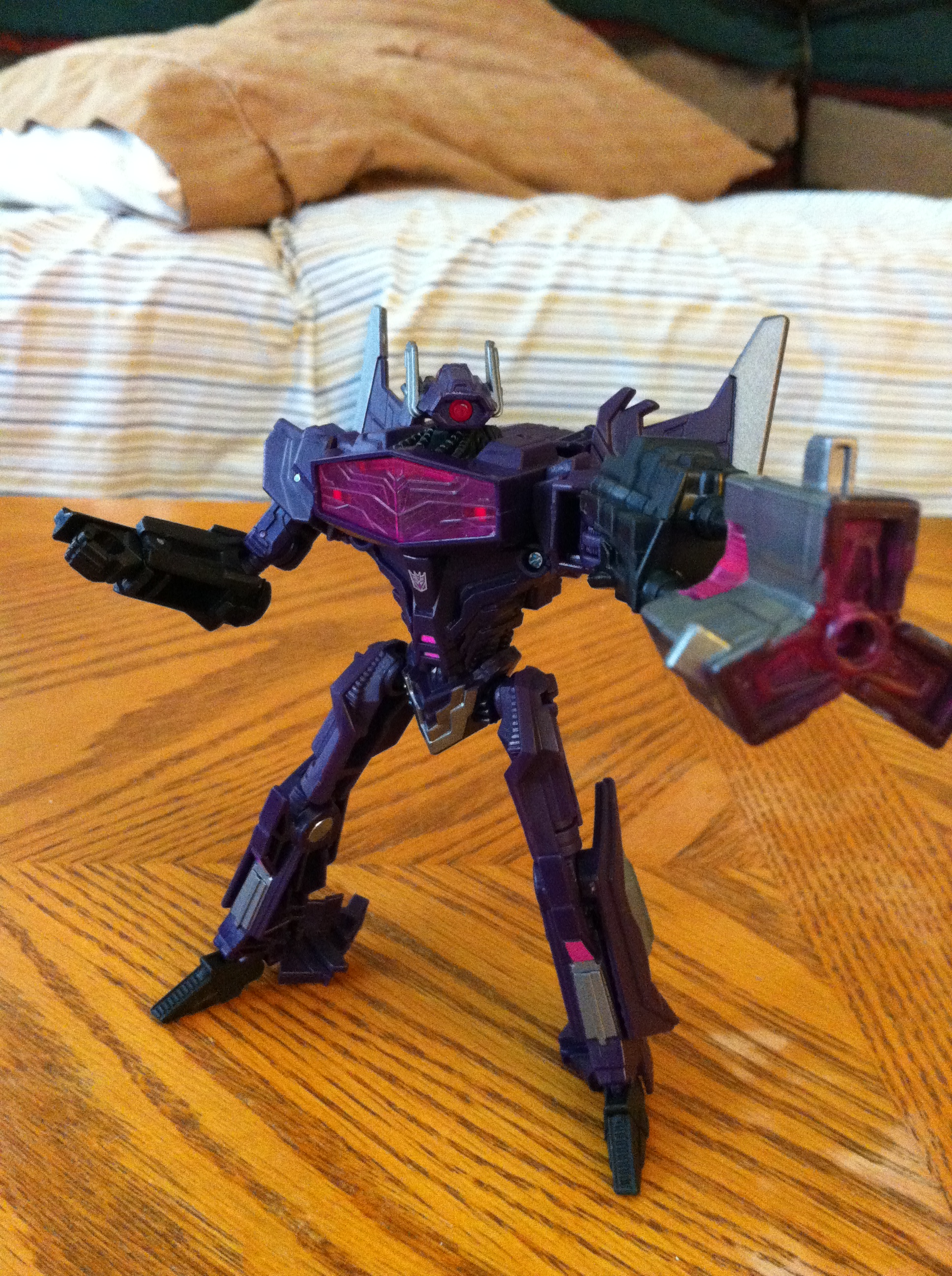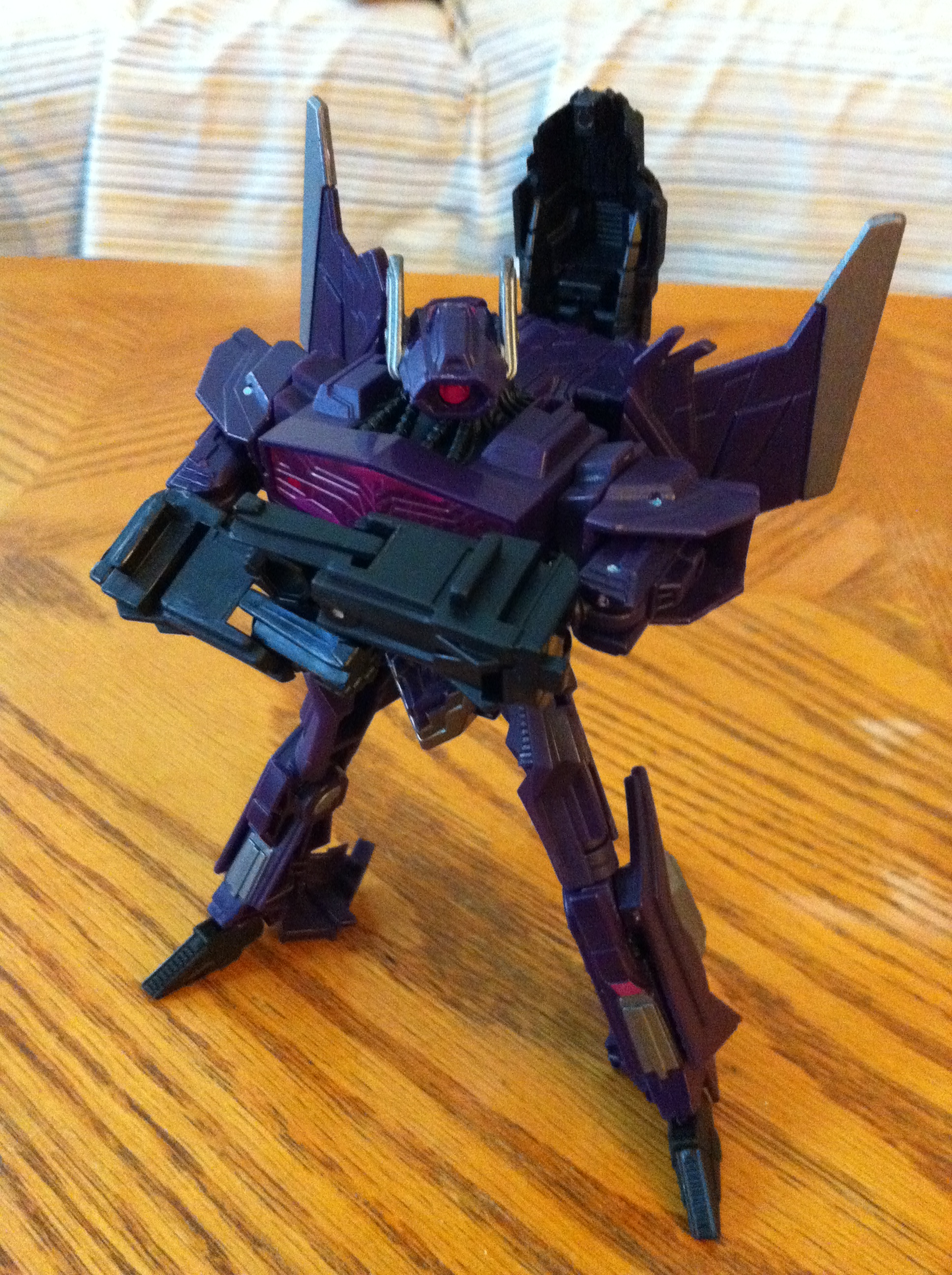 Shockwave is pretty amazing but there is one aspect that’s kind of odd.  The instructions don’t show you how to attach his cannon arm correctly.  According the the instructions, they have him holding the gun like so:
