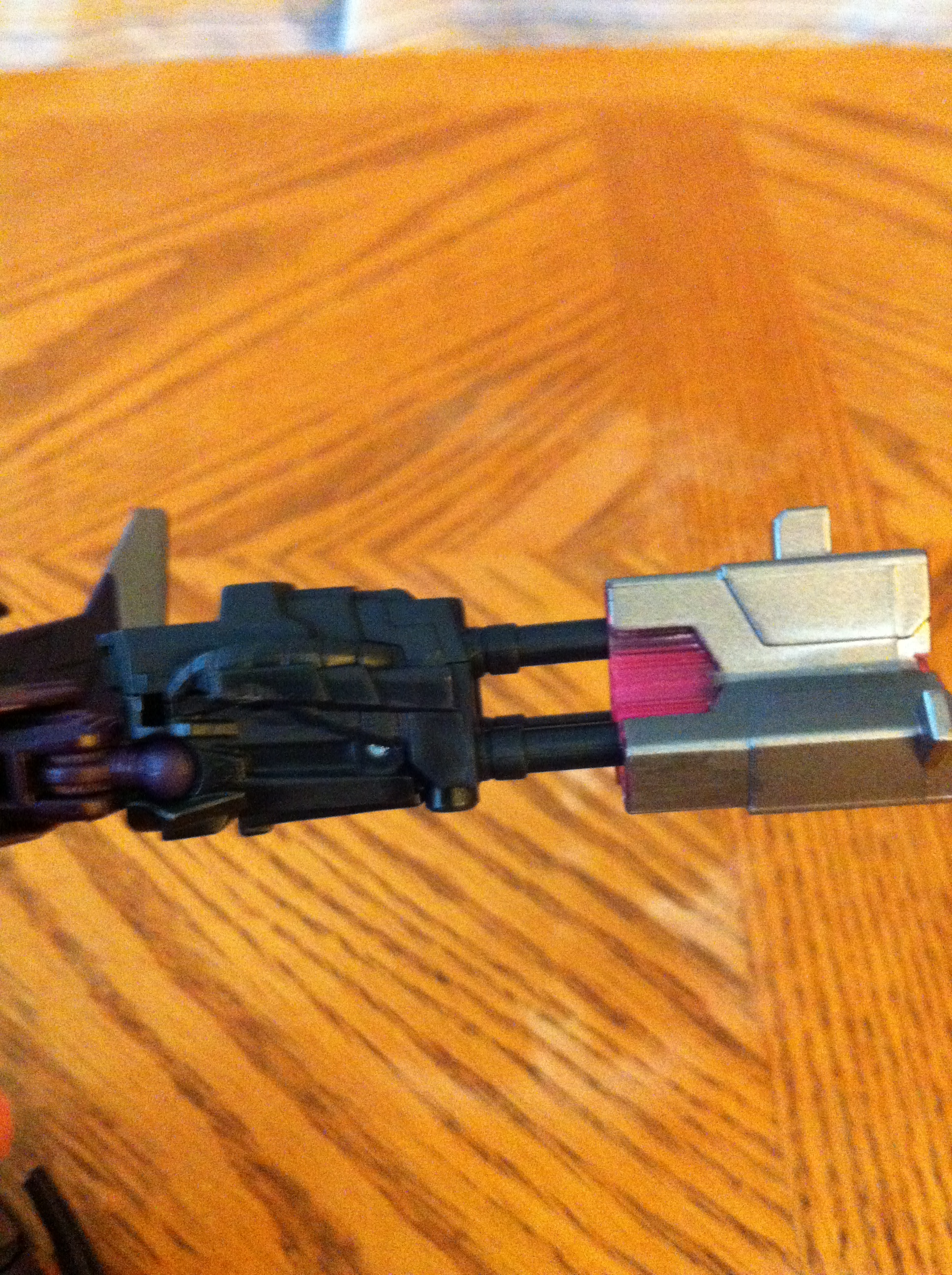 While technically functional, this connection severely limits Shockwave’s ability to aim his gun.