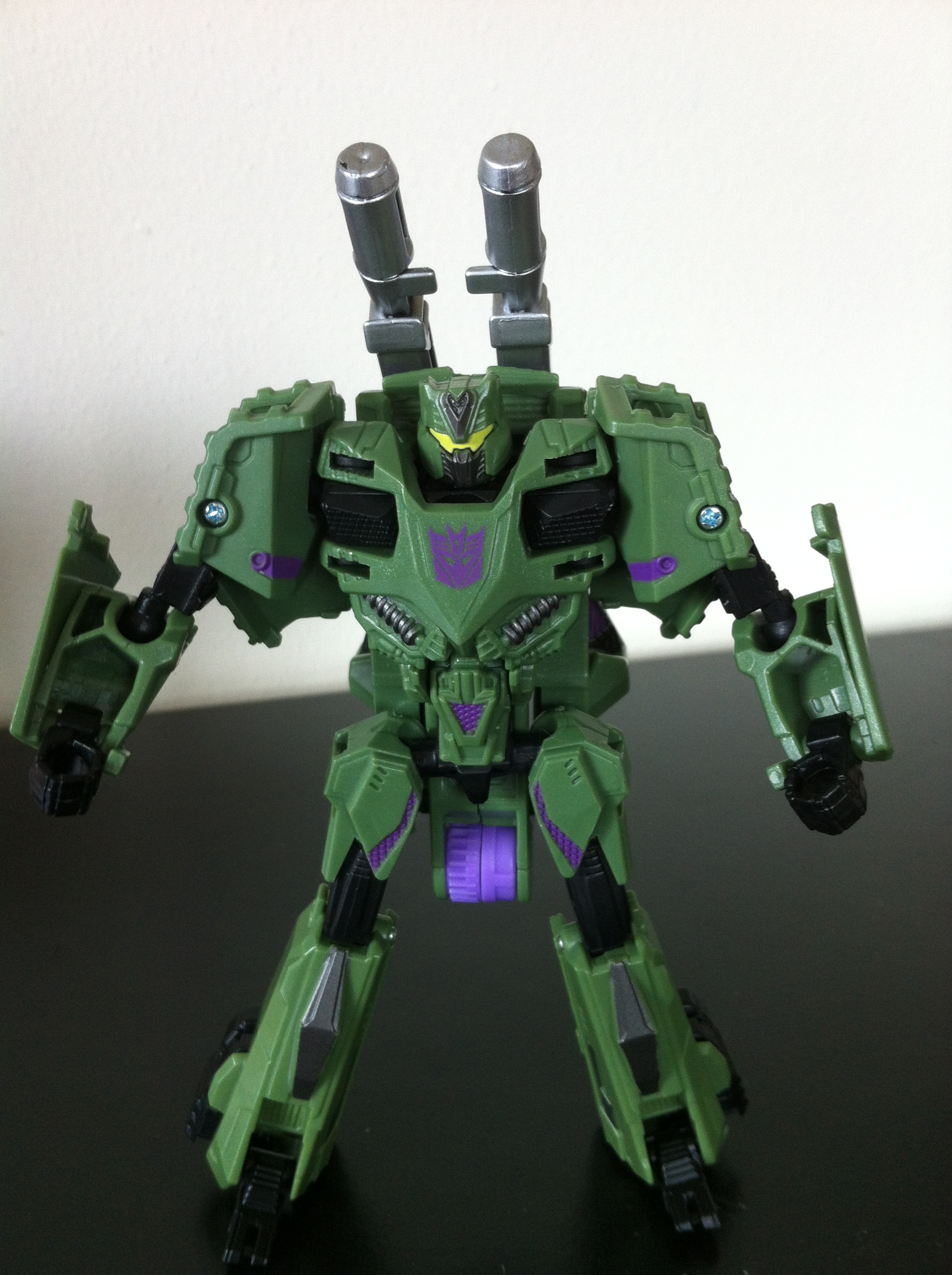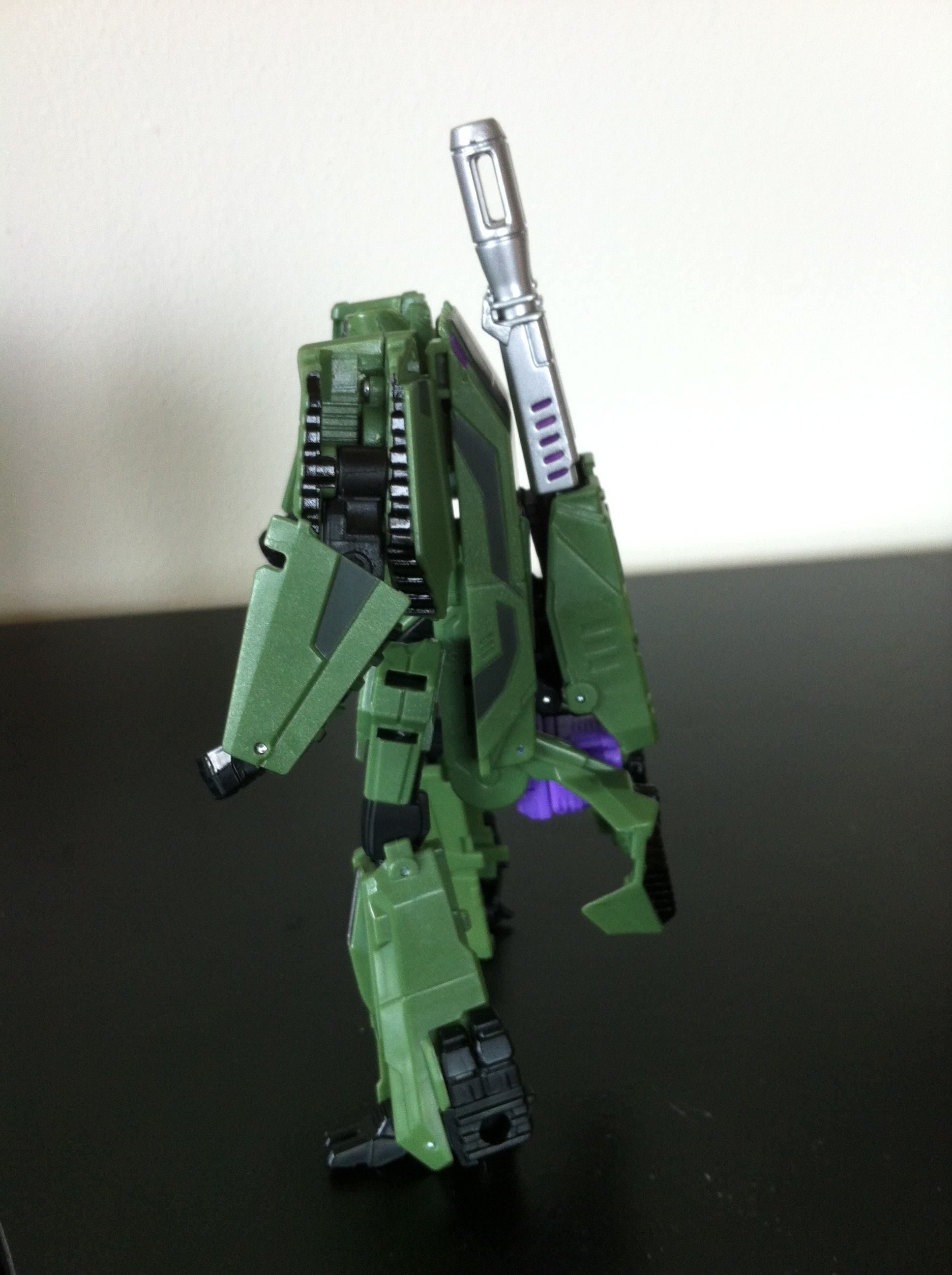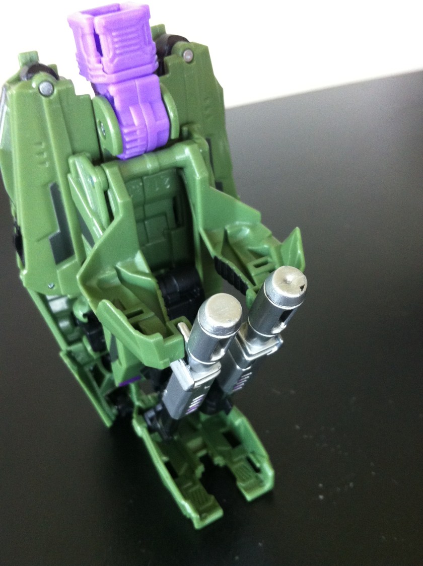 This removes the “coat tail” kibble behind the legs and gives the cannons a bit more of a dynamic position, allowing for a better firing position like may of the other Transformers with rockets and such on their shoulders.