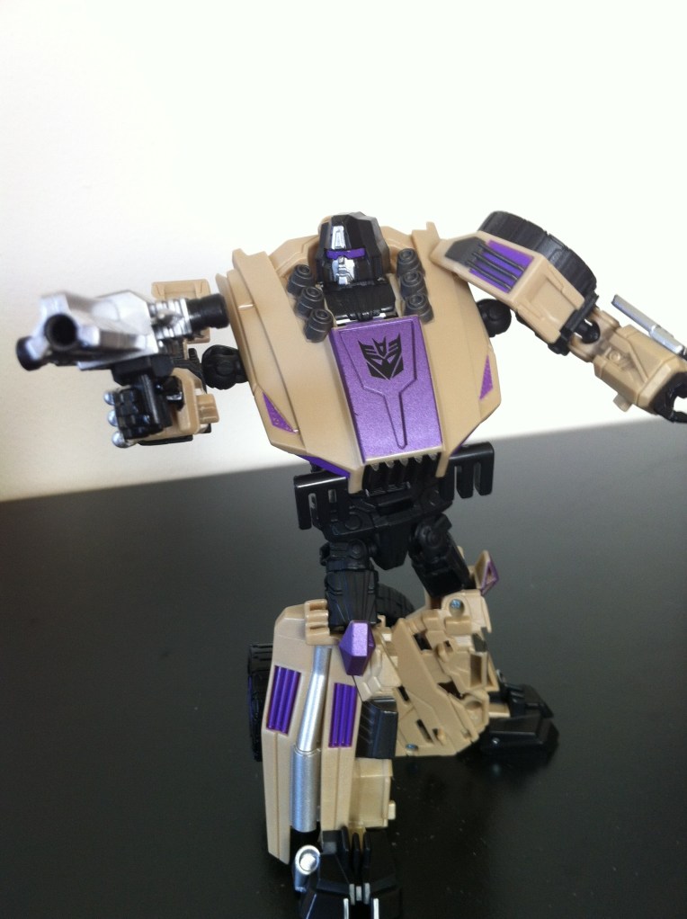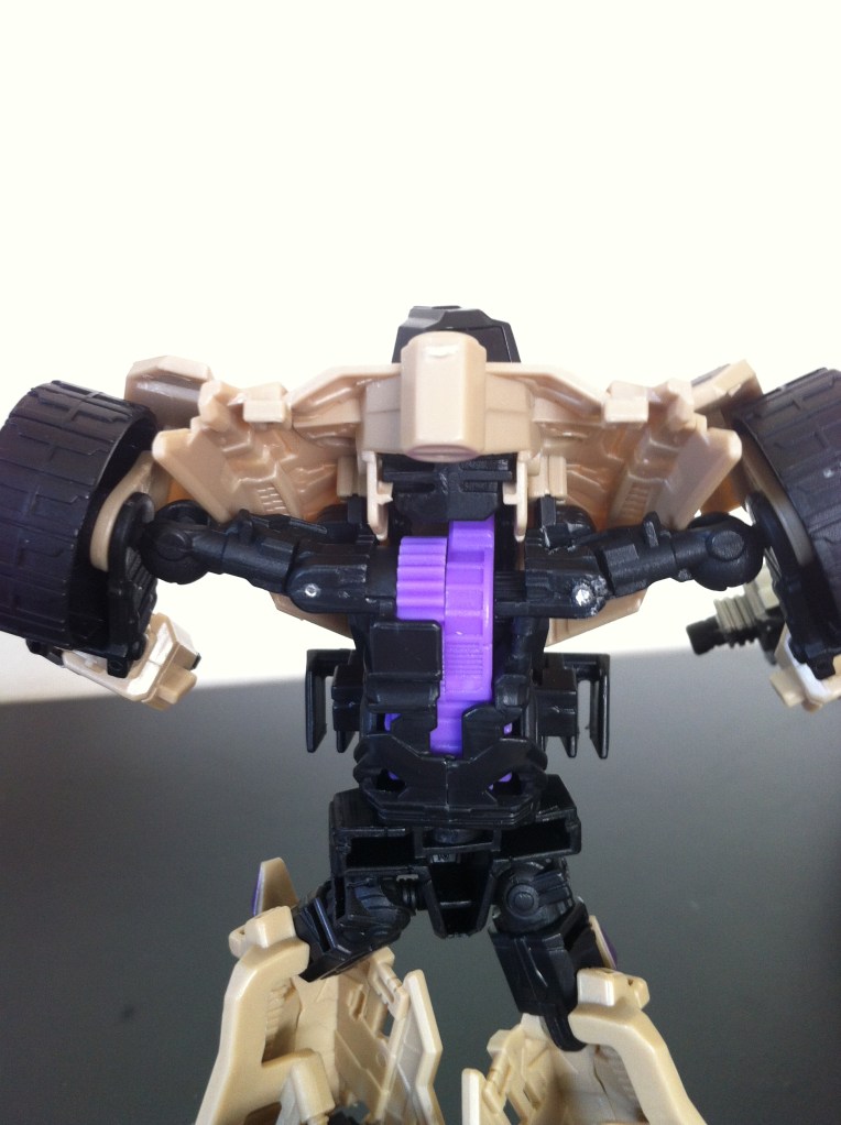 Again, I don’t really like the idea of the weapon just popped in the roof of the vehicle, but with Swindle, seems he’s a Combaticon, I’m okay with it, but I generally keep it backwards so it looks more like an engine block.