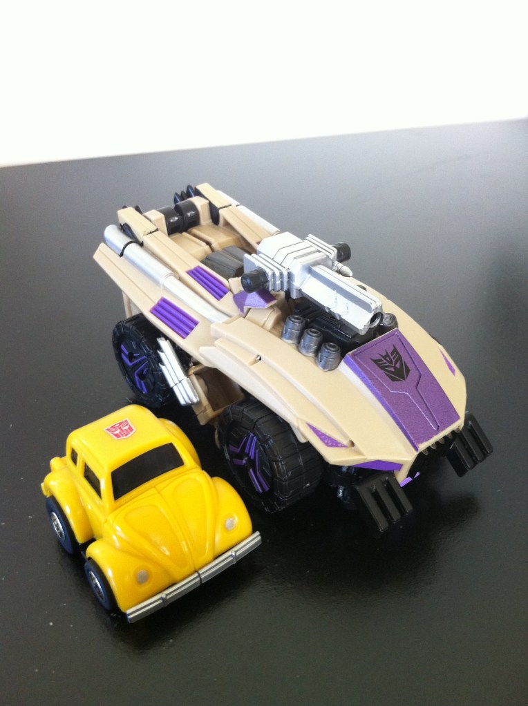 Here’s ‘Bee and Swindle Side by Side – he’s got a big alt-mode too, but again, seems he’s more on size with a deluxe, I’m not complaining.