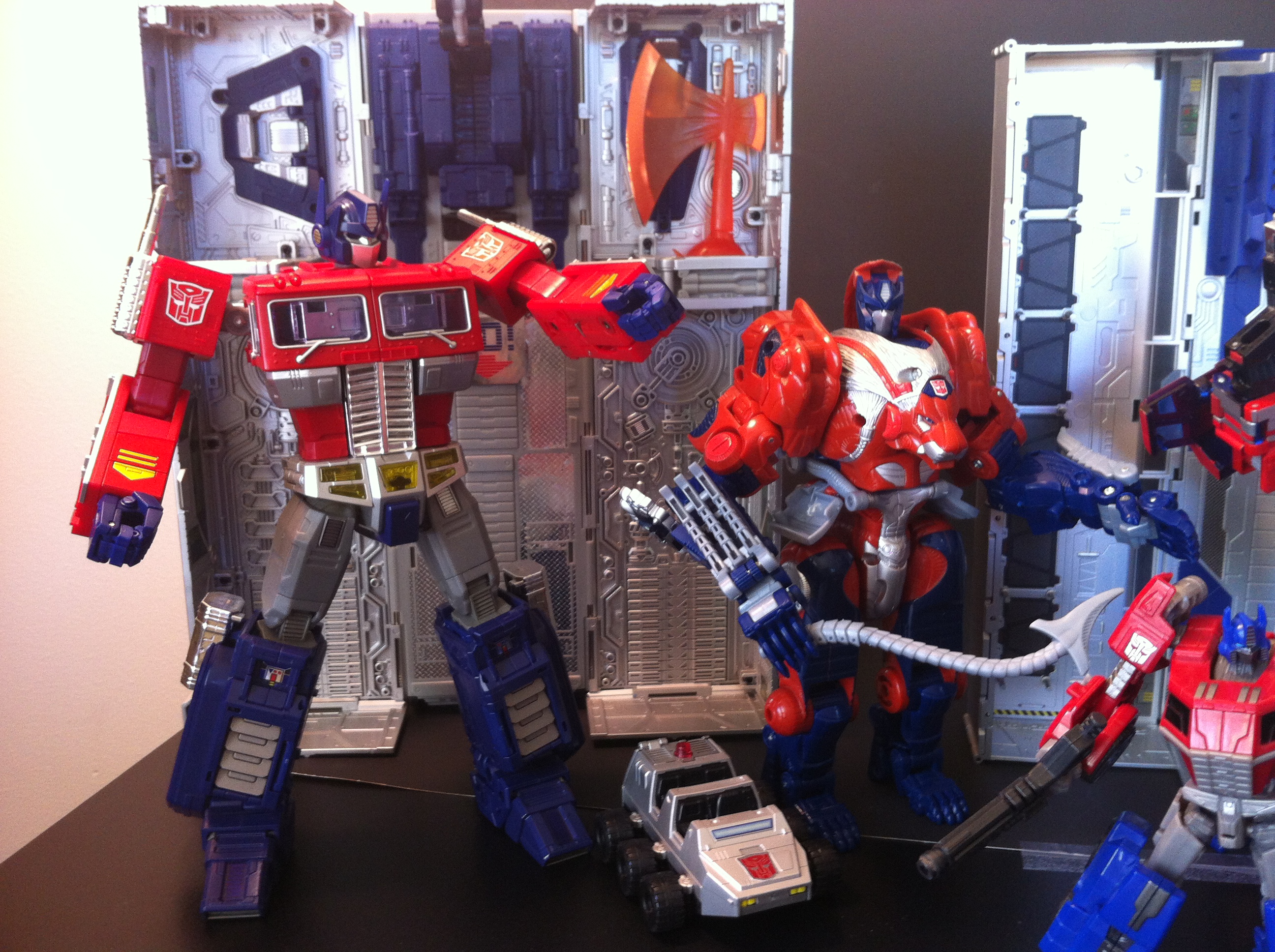 It’s odd, 2 years ago, I had 0 (Zero) Optimus Primes.  Then things changed.  With my recent lot that I picked up through my buddy in New York, well I’ve got quite a gathering at this point: