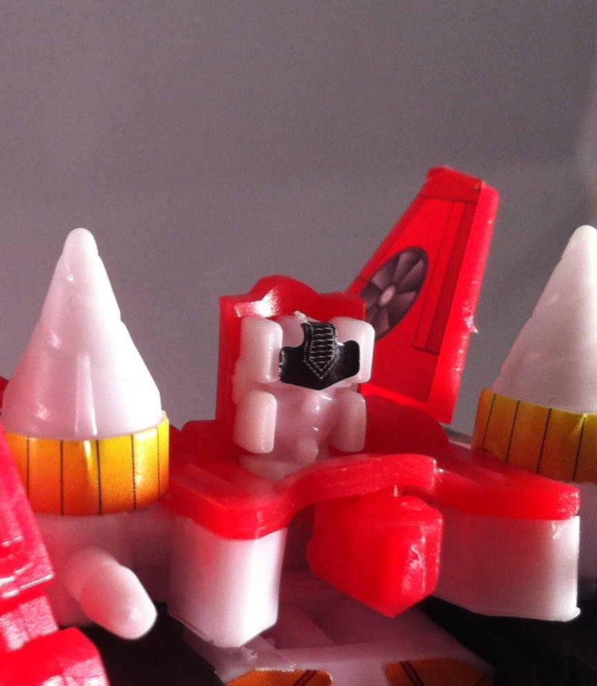Let’s go “small to large”. In a happy stroke of luck, I found a set of six toys at a Japanese grocery store by Chicago. This set was the “Guardian” combiner team: