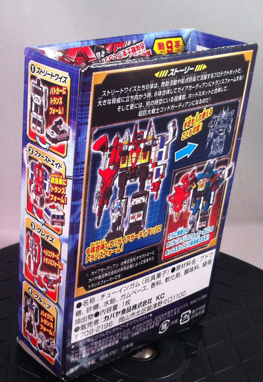Actually, Guardian is Defensor in the original Japanese G1 continuity. However, the set also creates Gaia Guardian and God Guardian (Gaia Guardian + Hot Shot). So you have three combiners there. 🙂 Just a shame that Takara Tomy did not consider making this set as well. Even worse is that gum. And I thought the candy I normally get is bad.