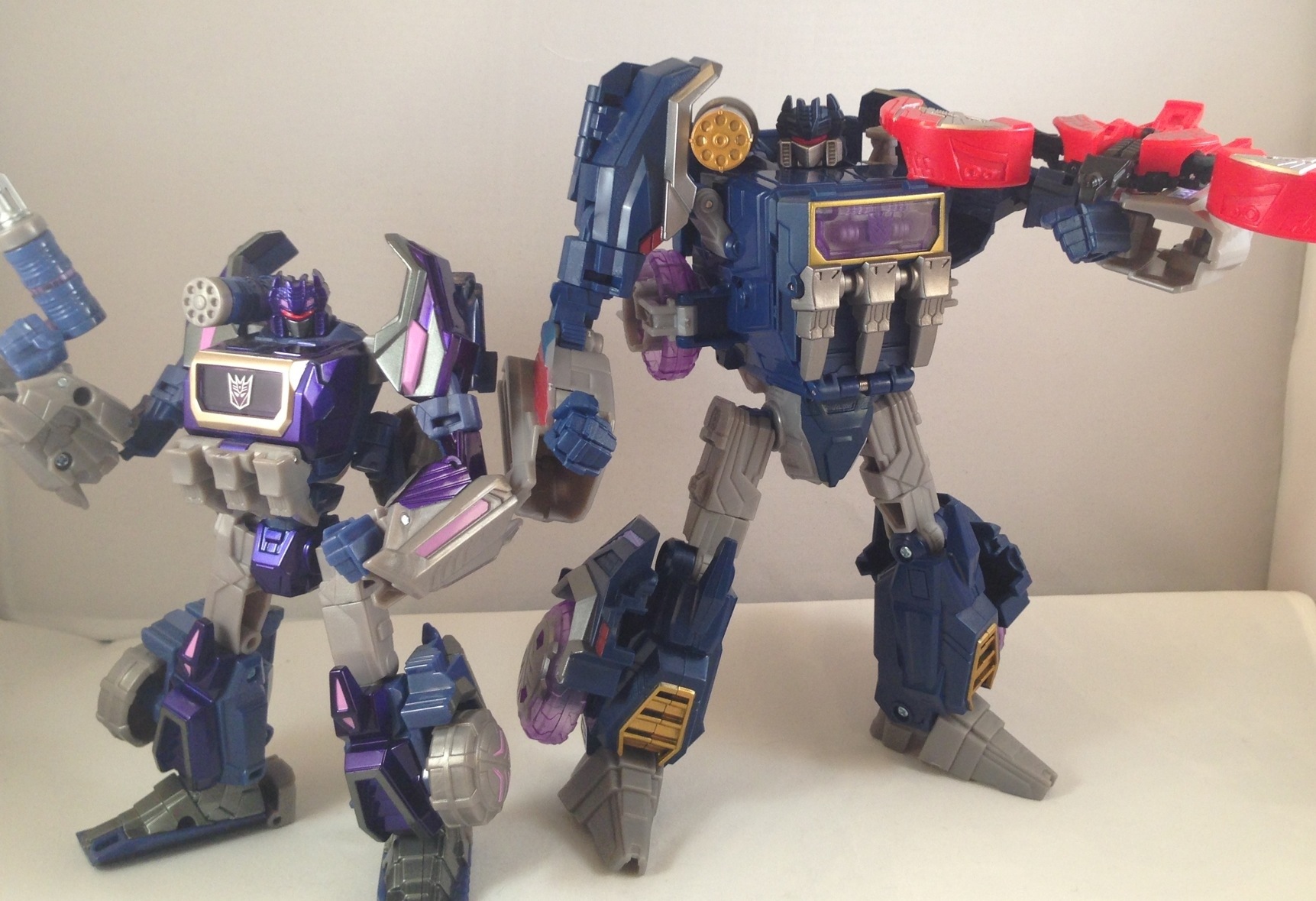 Here’s a look at the size difference between WFC Deluxe Soundwave( Takara United version)
