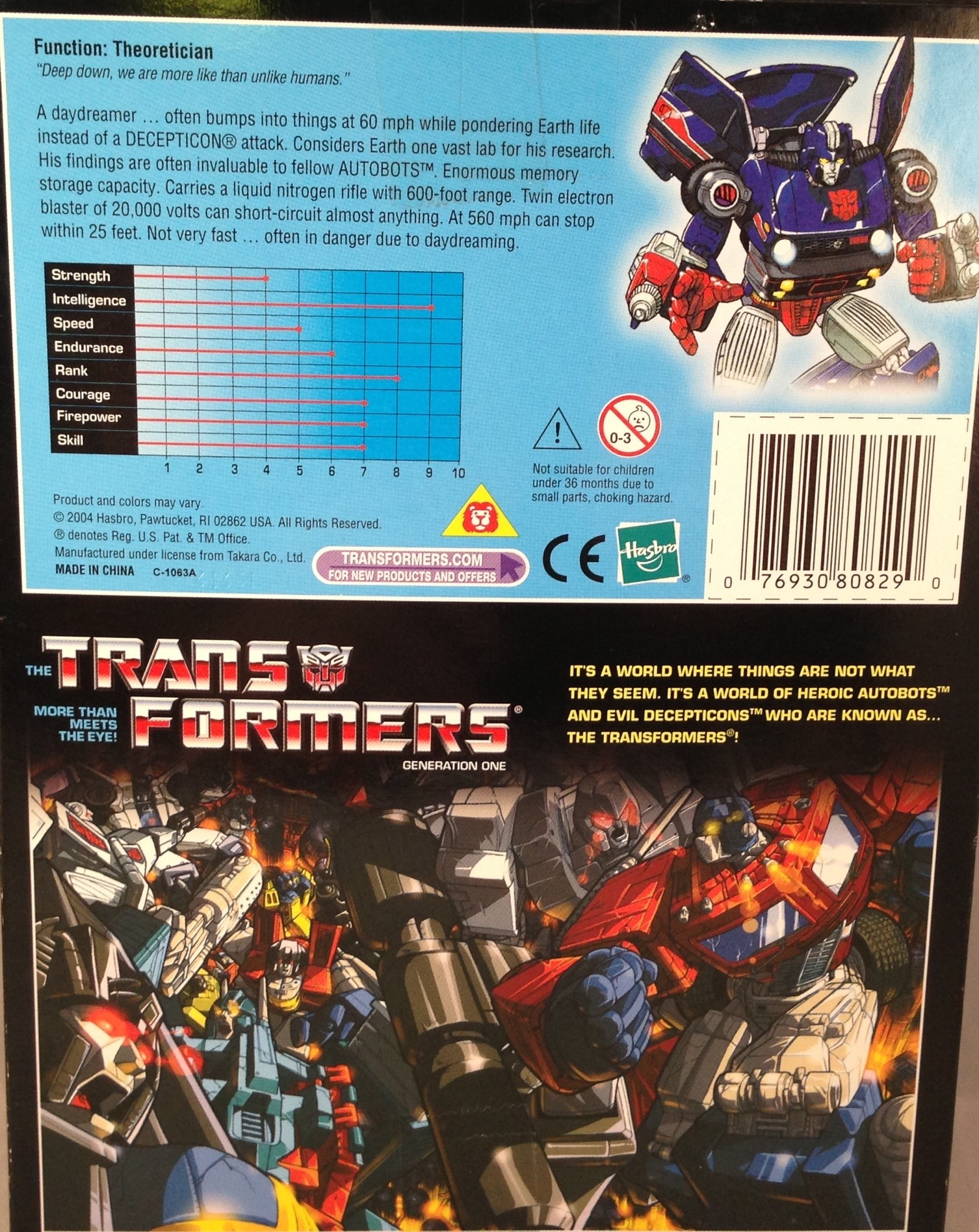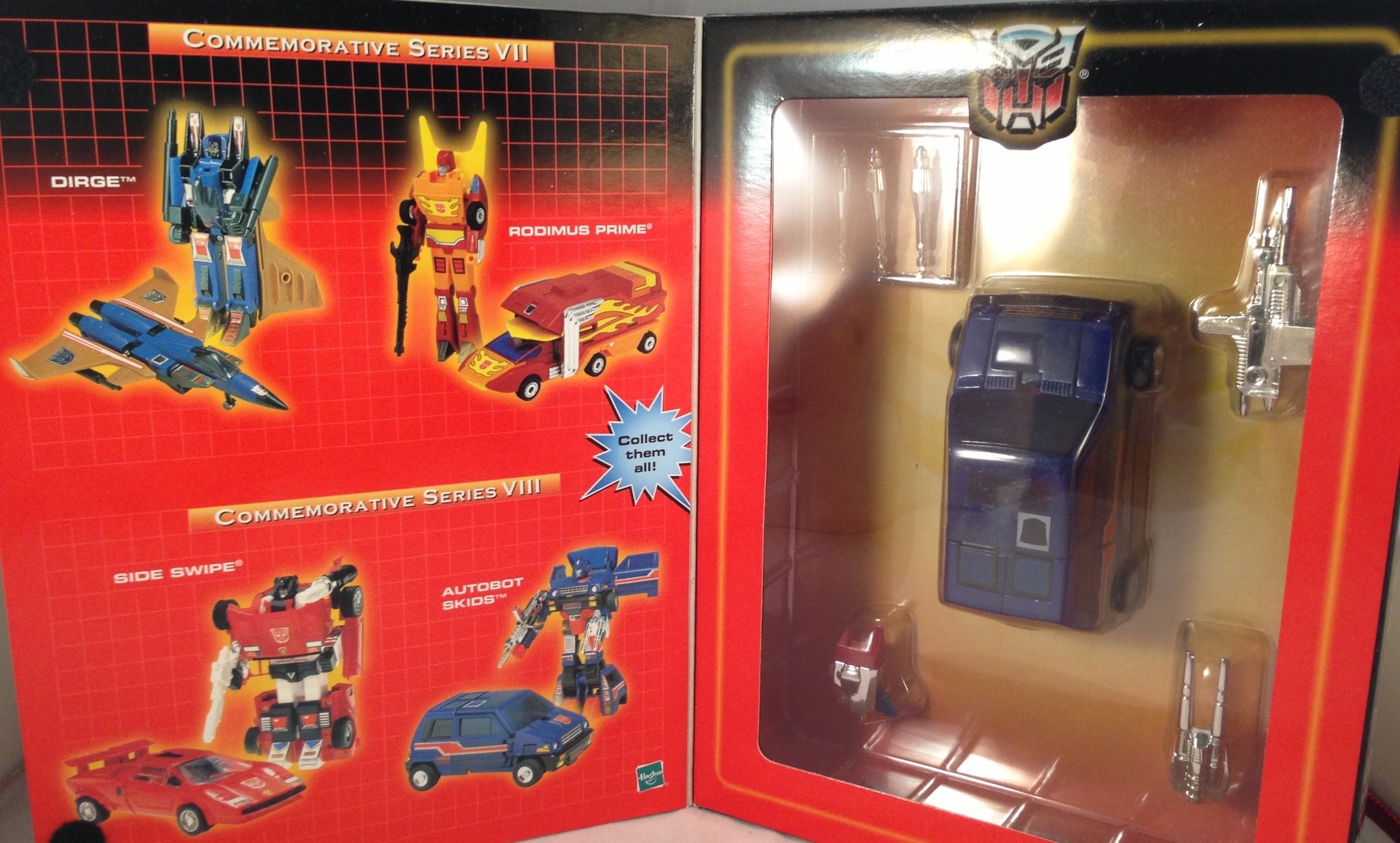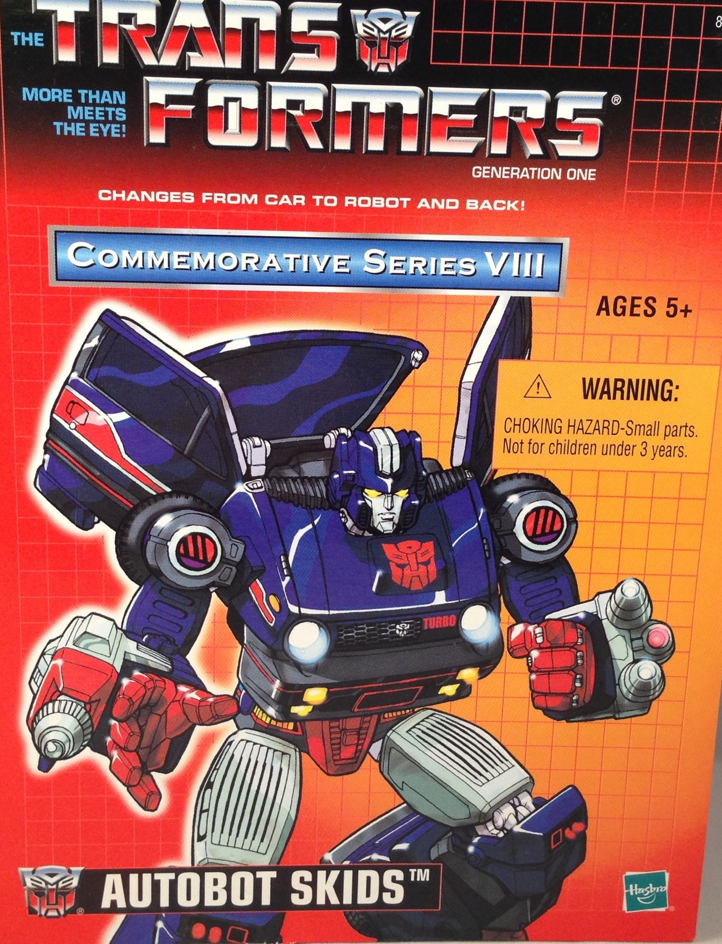 I love the IDW-esque Character art on the front of the commemorative packages. So awesome. And seems we’re no where near getting an updated or Generations Skids, I wanted to pick up this version. The commemorative packaging is very well done, with well drawn character art, and a redesigned back: