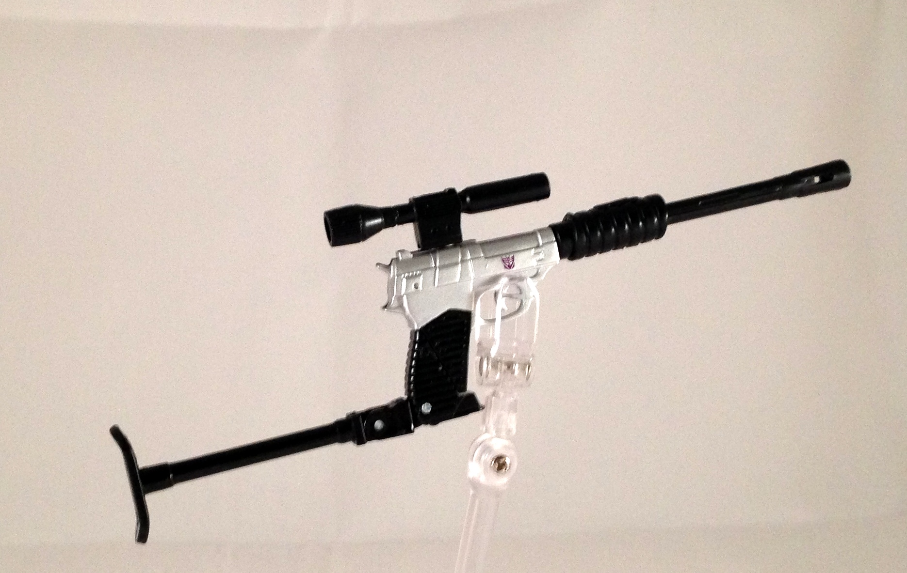Finally, and as yet ANOTHER nice surprise, he comes with Megatron in gun mode, but this time, designed not to crumble in your hands the moment you touch him: