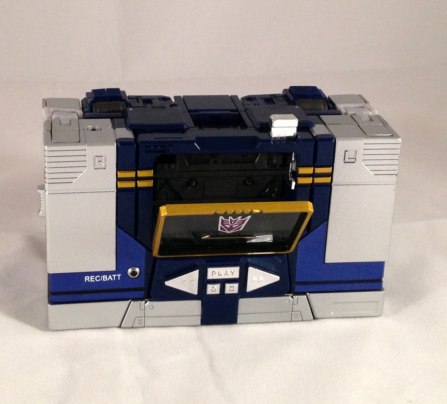 That’s right folks: First it was one cassette, then the make the old G1 door bigger so he could hold TWO, and now they’ve engineered the entire compartment to hold up to THREE tapes.
