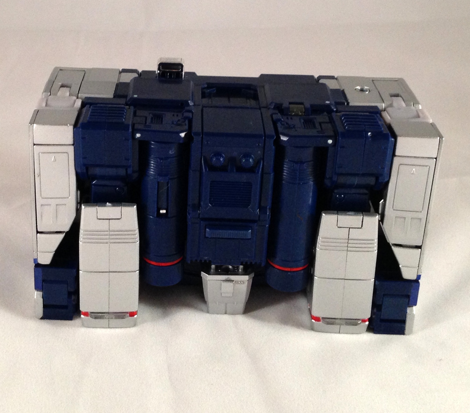 Unlike G1 Soundwave, due to the design of the figure, the back ends up looking a bit…open.  The weapons store vertically next to the arms, and without the little sensor weapon there, there’s just a big empty space.  I can understand why people aren’t thrilled with this, but honestly, how often is anyone going to go “OOOH, Soundwave, quick, transform him into a Walkman and show me his back!”, so I’m not too worried.