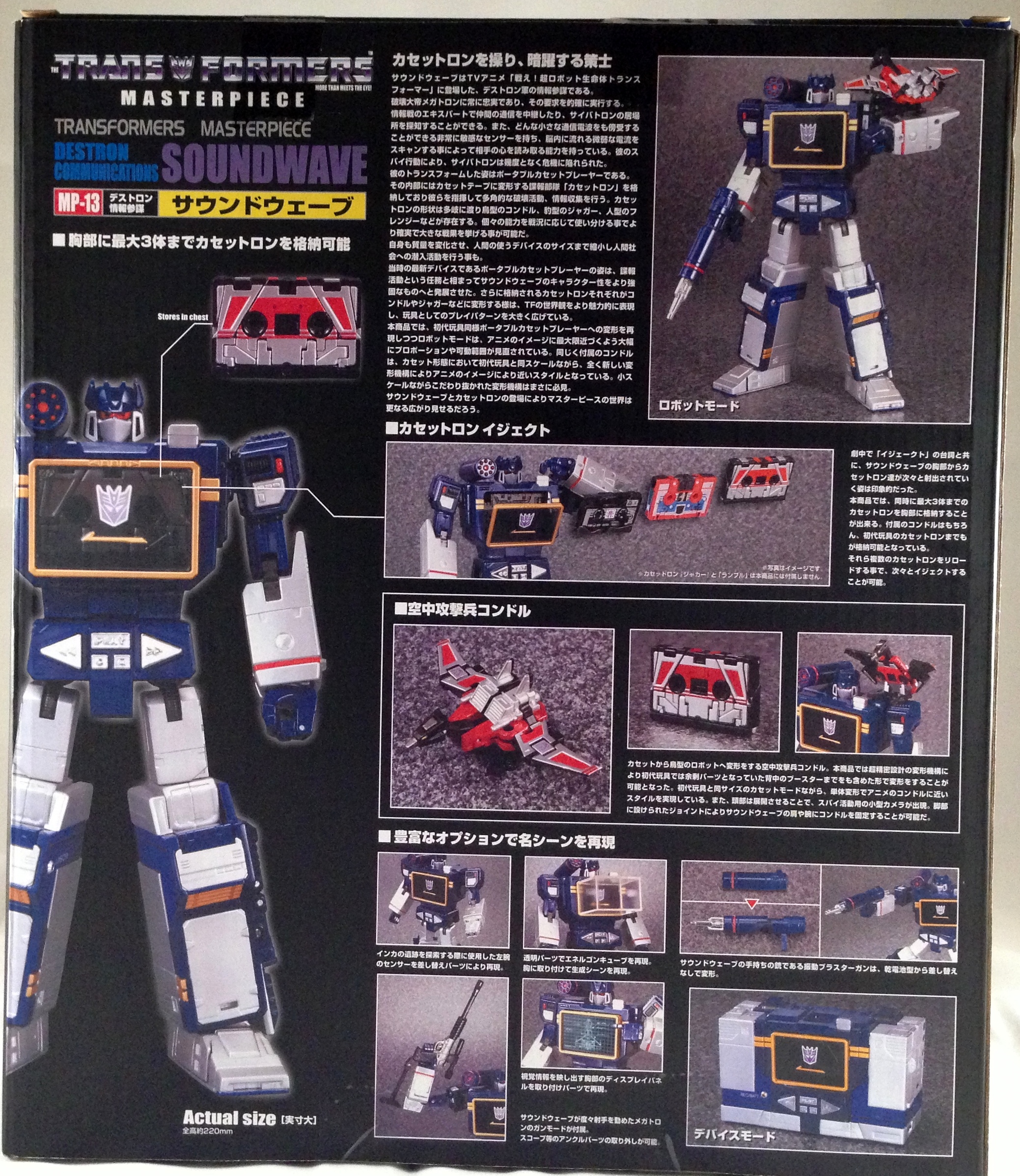 Soundwave is as easily recognizable as Optimus Prime to anyone who grew up in the 80’s and for me, he is a iconic and loved character who to this day represents all that I loved about Transformer toys.  Today, Takara Tomy brings to us, after nearly a decade of waiting, Master Piece #13: Soundwave with Laserbeak (Condor)!