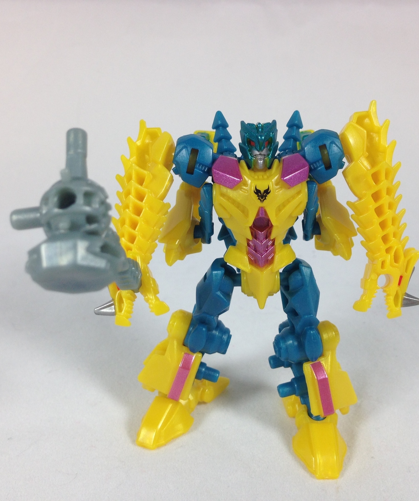 His head sculpt is pretty awesome though, with dark red eyes. The Predacon symbol is nicely done, but I’ll likely put a Decepticon symbol there.