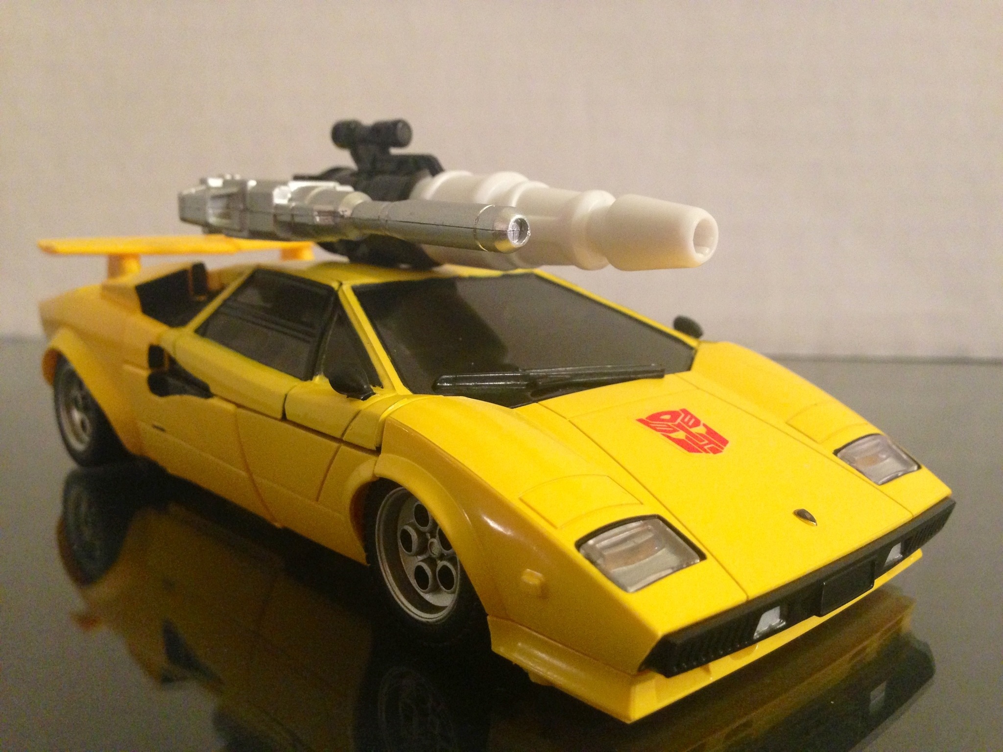 A lemon yellow repaint of Masterpiece Sideswipe, he features the same design (unlike Red Alert), but because he’s further down the line, he features improved paint apps –