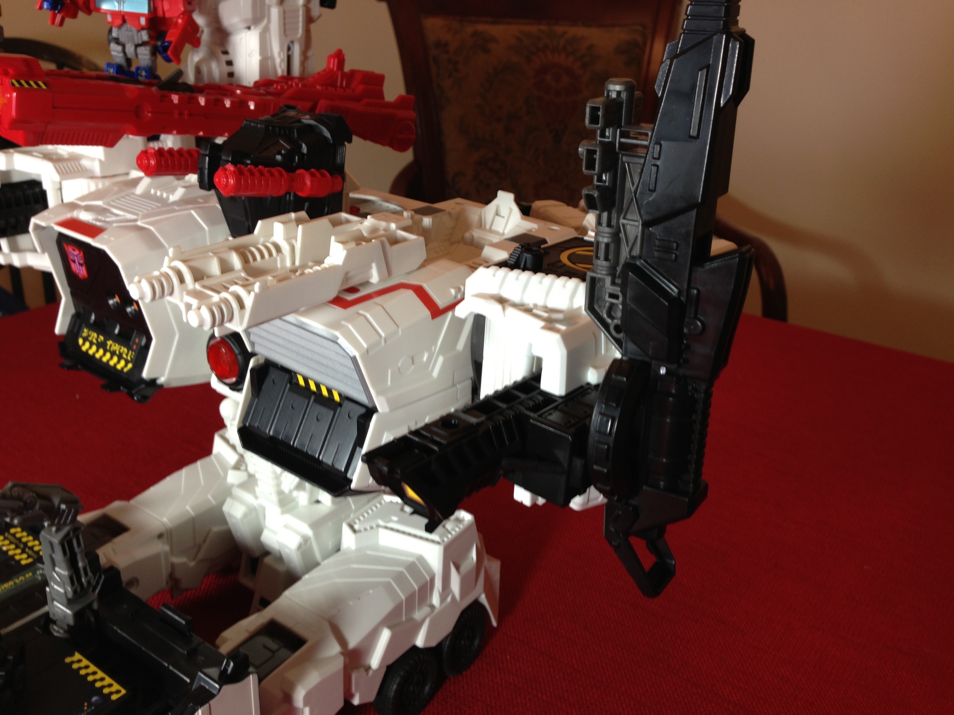 1. Such a massive beast. Such massive win. Though I have no idea where I’d put a bot this size, I’m soooo tempted to get him. As much as I don’t like putting on stickers (unless they’re a reprolabels upgrade), ‘Plex’s stickers really make a big difference. They add so much little detail (I love the Arcee, Optimus, and Bumblebee on the chest) and really enhance the product.