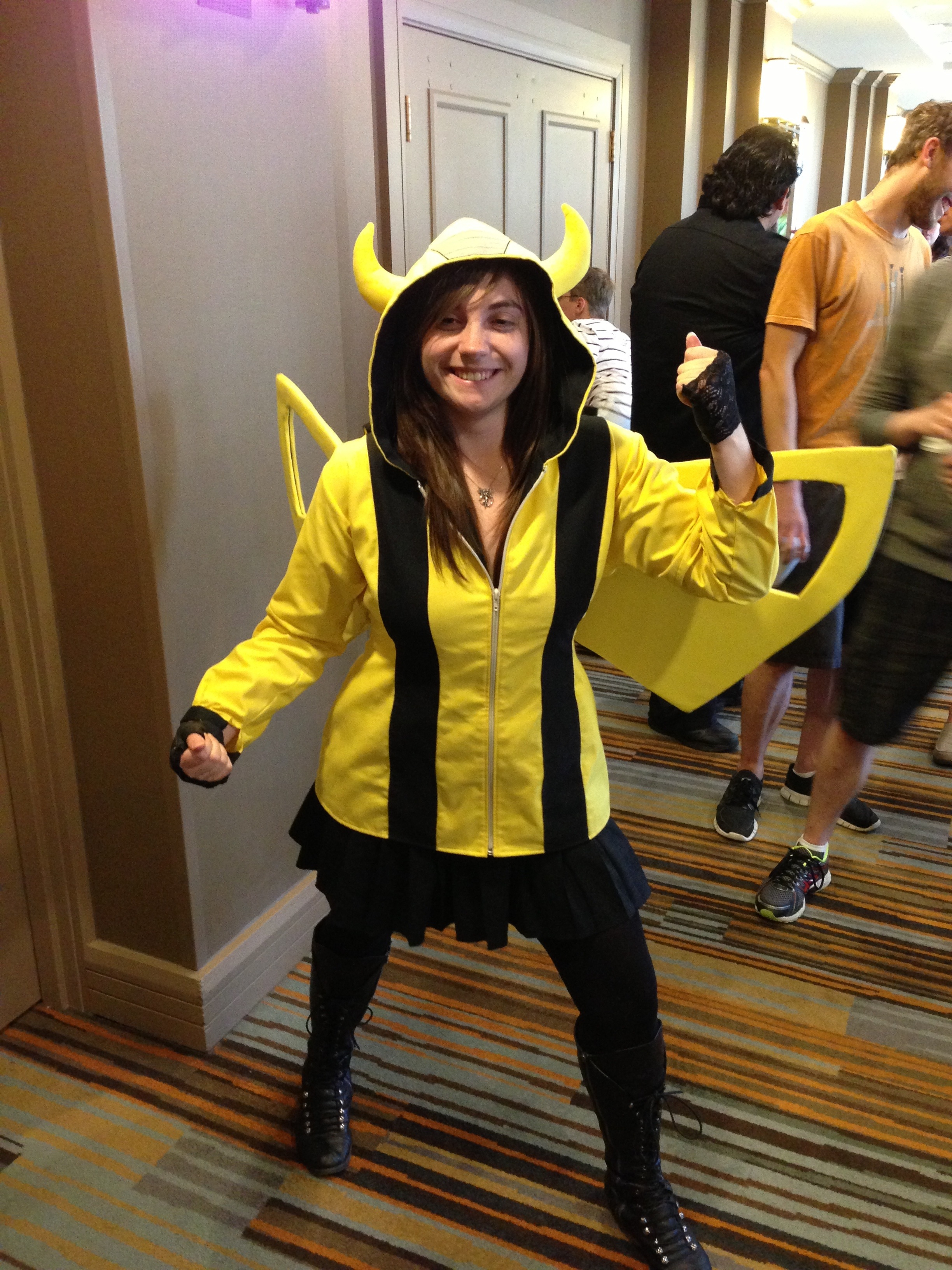 And our super awesome Chica in the Bumblebee outfit shows up In a First Aid costume…radical.
