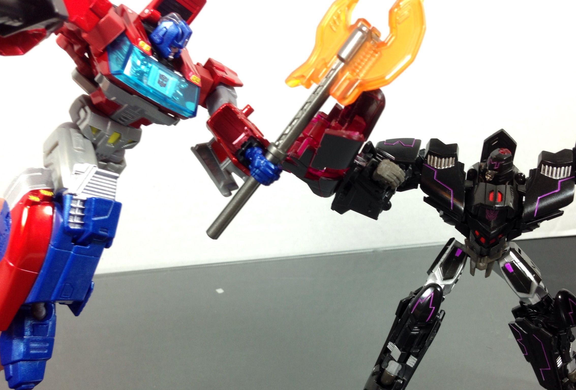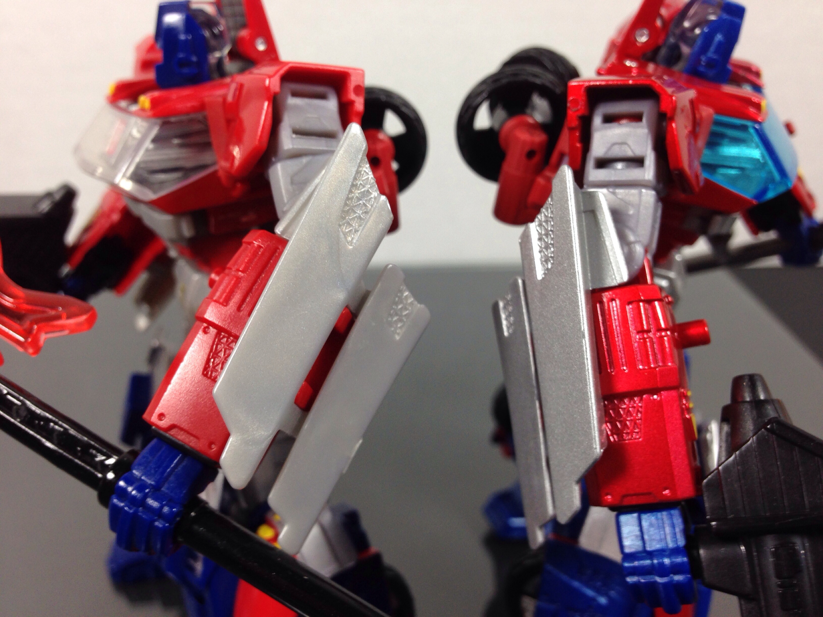 While I like the Hasbro Orion Pax figure a lot more than their Megatron, the Takara Megs has a great deco. The purple striping is gorgeous. Is the Takara Megs floppy like the Hasbro version?