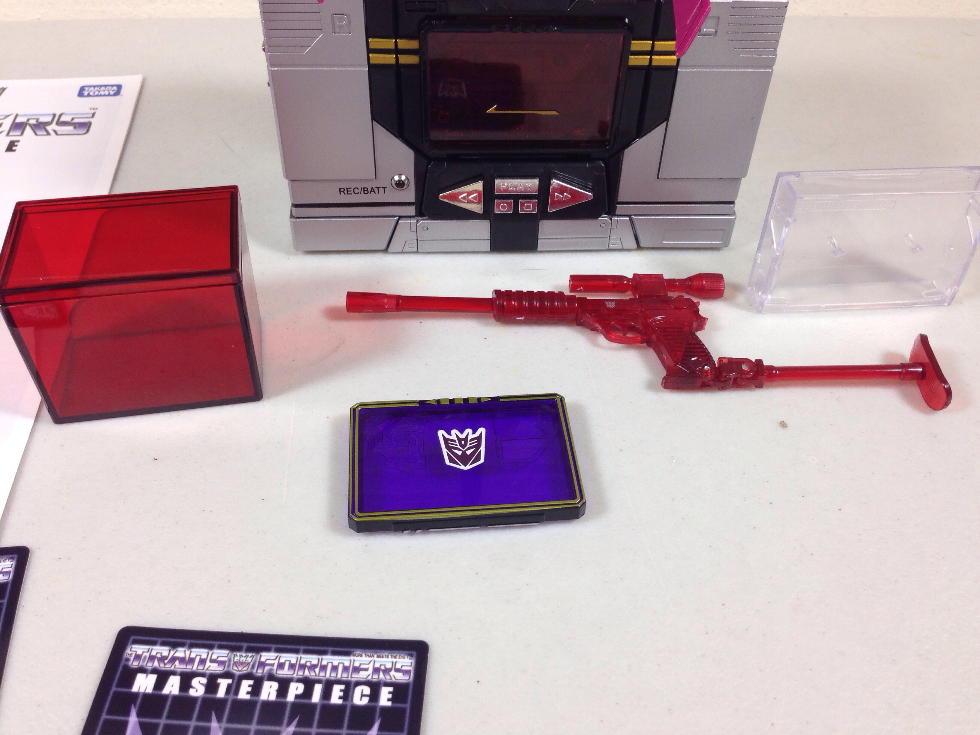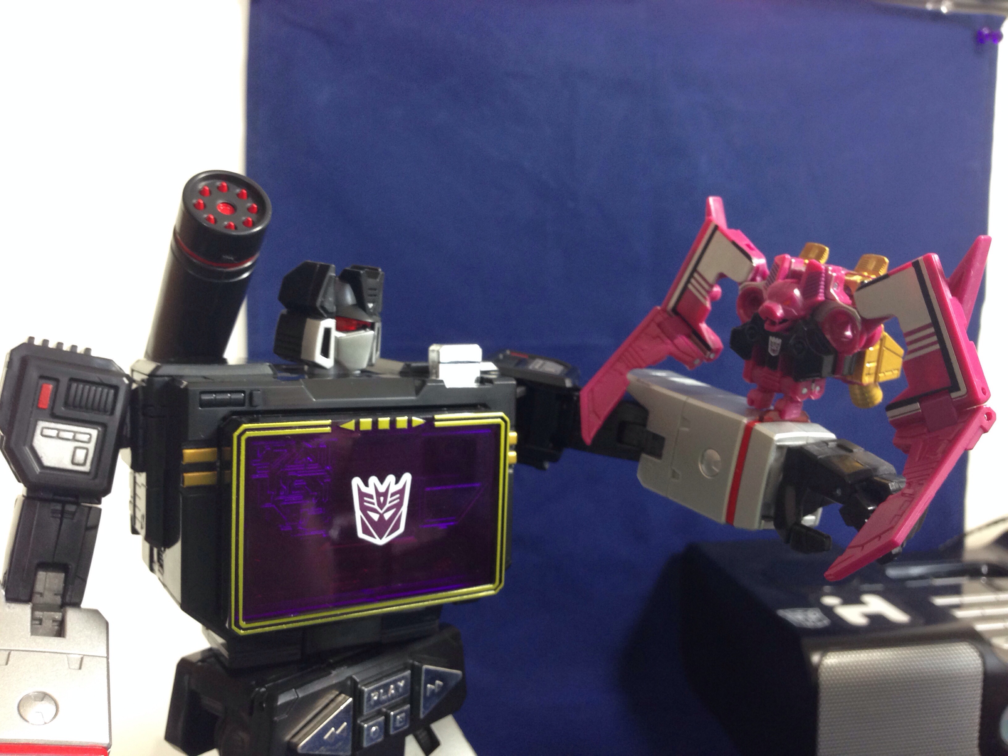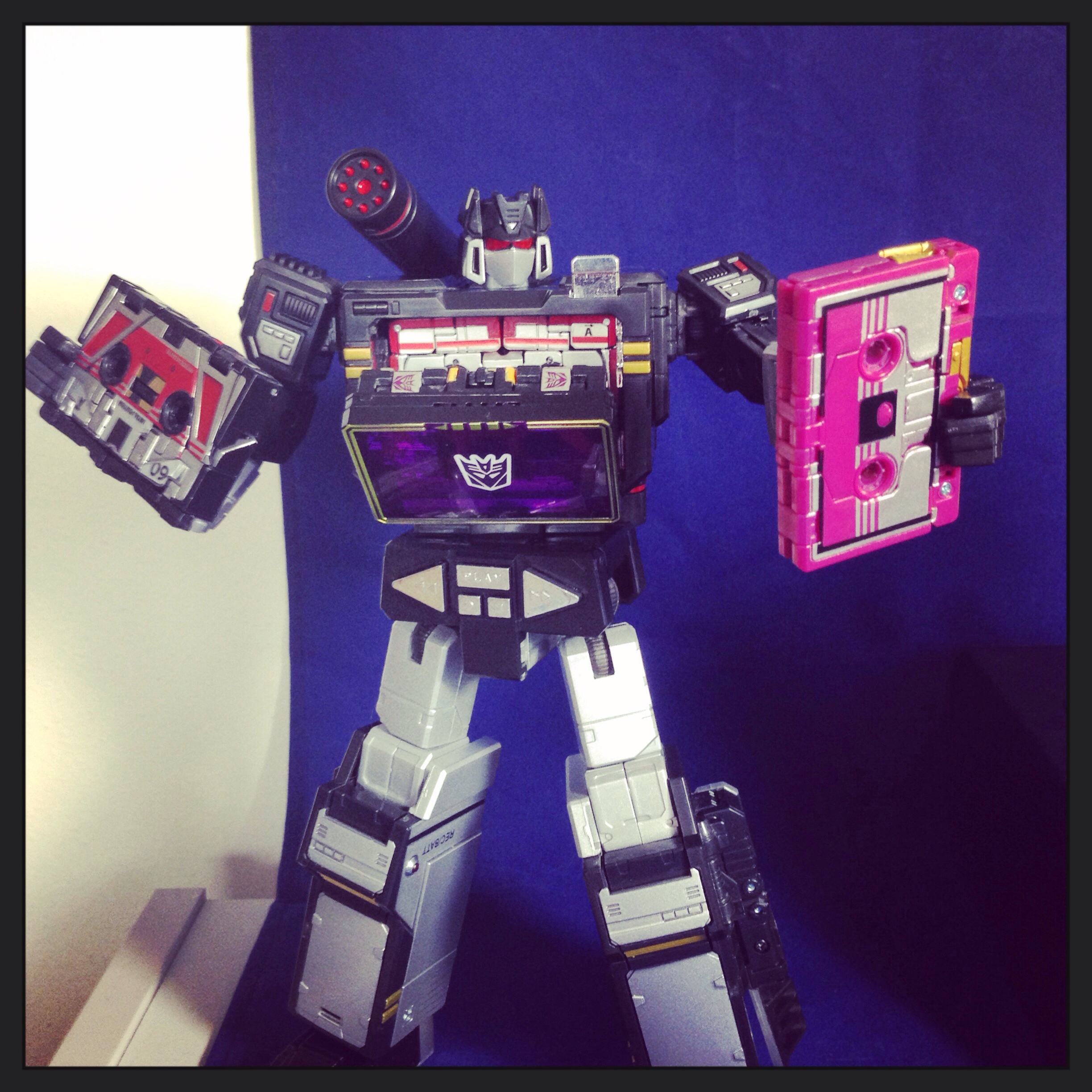 Soundblaster is a unique recolor. He’s one of the only recolor characters that actually has an origin in the G1 Cartoon. Unfortunately, he’s entirely identical to Soundwave in design aside from being black instead of blue. So this won’t really focus on Soundblaster much. Instead we’ll focus more on the amazing Ratbat you get with him. Like the rest of the MP Cassettes, Ratbat is the epitome of masterpiece design stuffed into a tiny little micro cassette body. Like Lazerbeak, Buzzsaw and Ravage, Ratbat features weapons that are integrated into his body and looks amazingly cartoon accurate in bat mode. Some may argue that having to buy a Soundblaster just to get Ratbat is unfair, but for those of us who like Soundblaster, Ratbat is an amazing little accessory!
