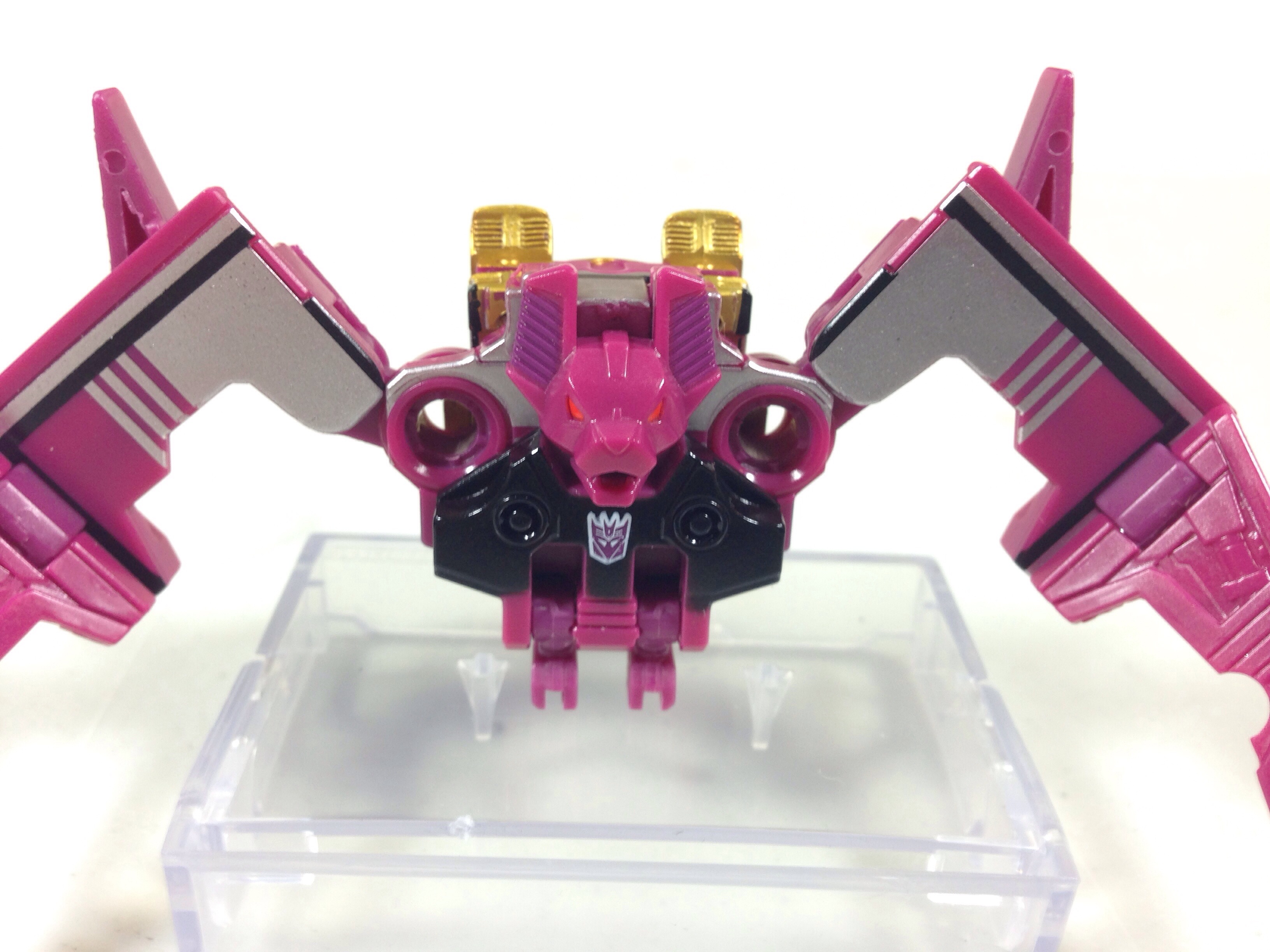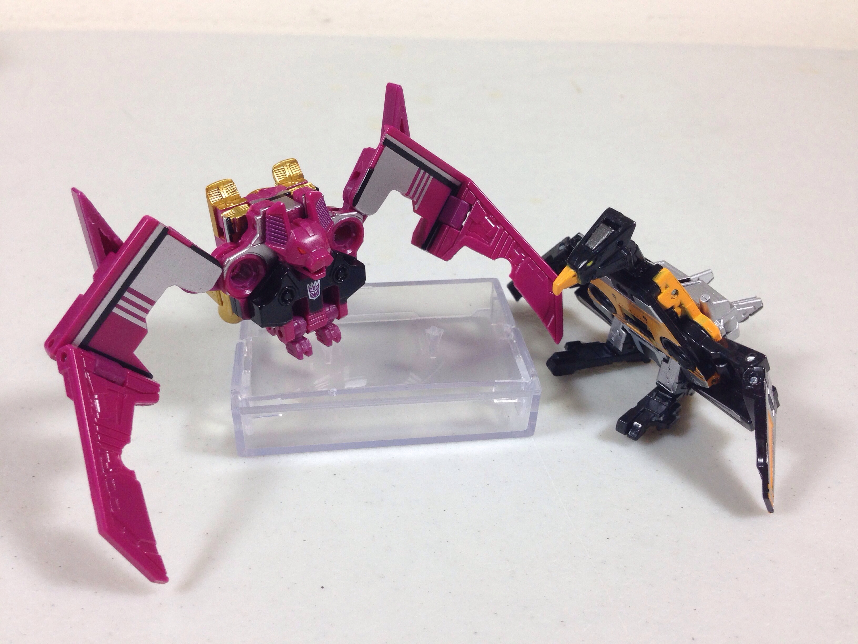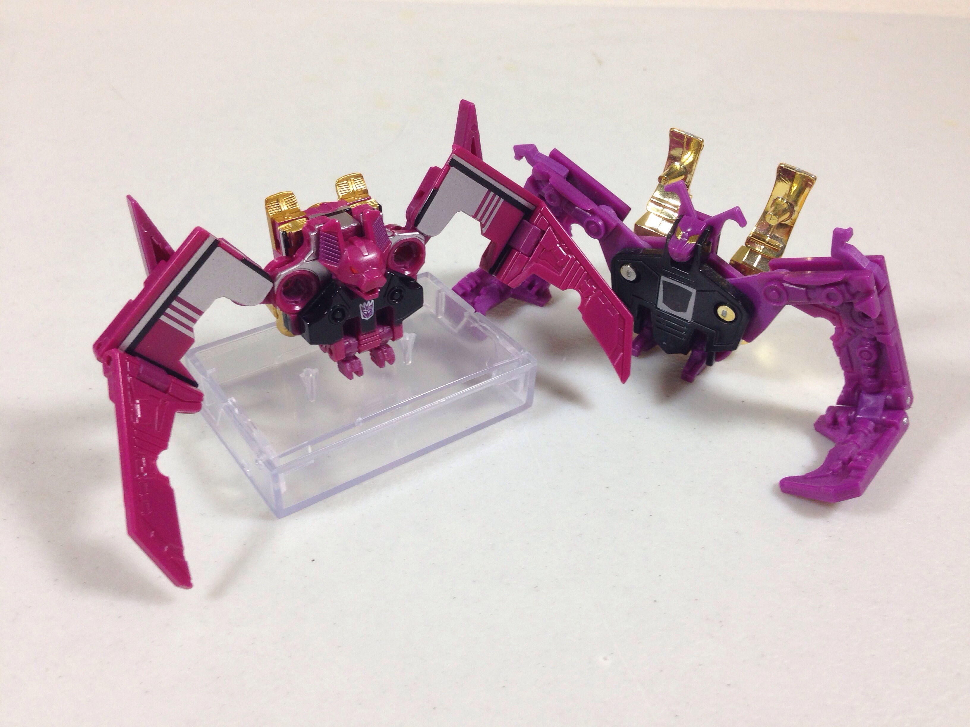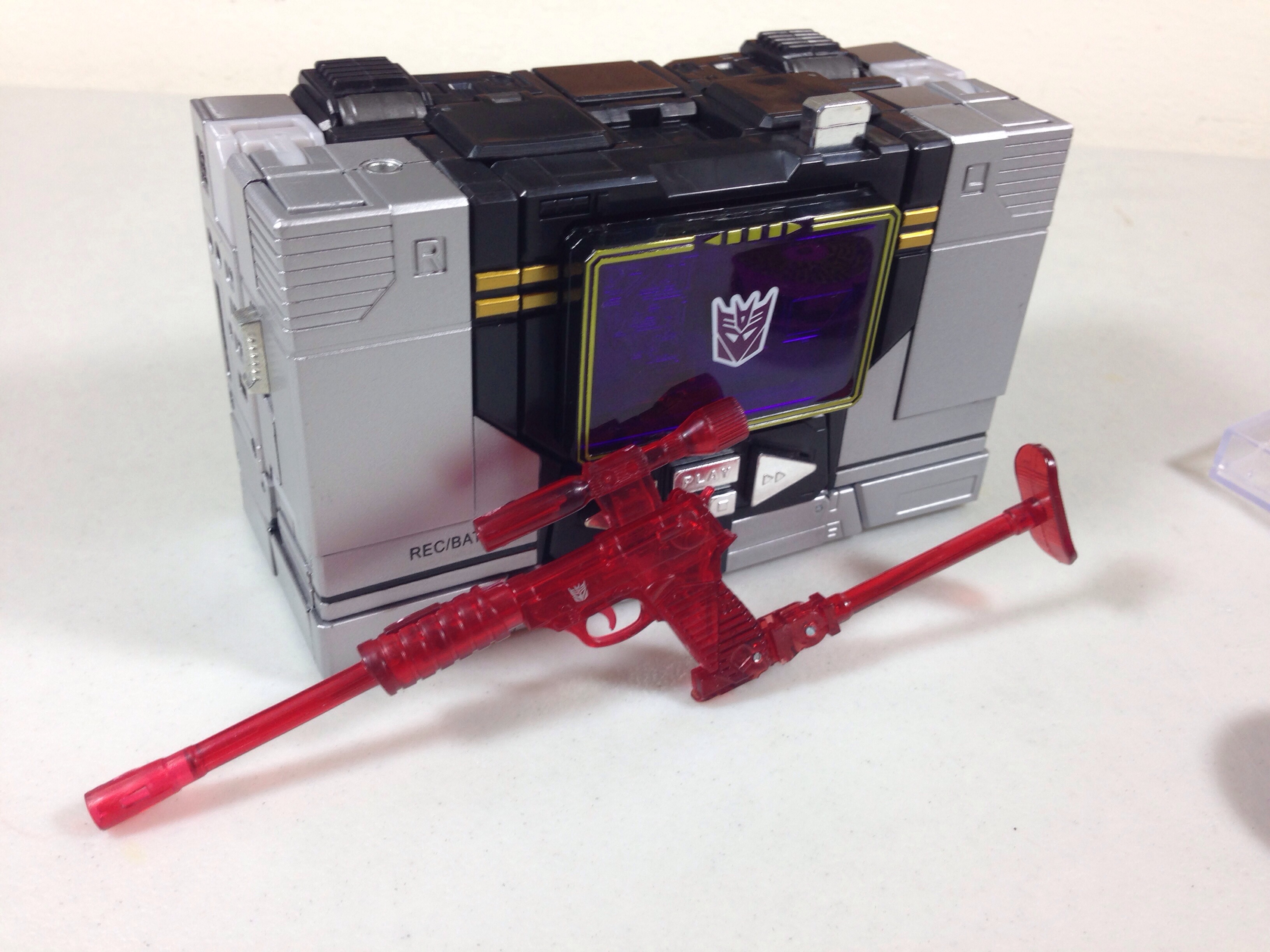Soundblaster is a unique recolor. He’s one of the only recolor characters that actually has an origin in the G1 Cartoon. Unfortunately, he’s entirely identical to Soundwave in design aside from being black instead of blue. So this won’t really focus on Soundblaster much. Instead we’ll focus more on the amazing Ratbat you get with him. Like the rest of the MP Cassettes, Ratbat is the epitome of masterpiece design stuffed into a tiny little micro cassette body. Like Lazerbeak, Buzzsaw and Ravage, Ratbat features weapons that are integrated into his body and looks amazingly cartoon accurate in bat mode. Some may argue that having to buy a Soundblaster just to get Ratbat is unfair, but for those of us who like Soundblaster, Ratbat is an amazing little accessory!