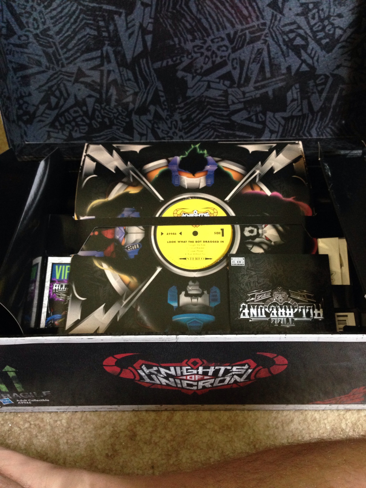 Polarizing at best, Hasbro shocked the fandom with the announcement of their OTHER SDCC exclusive set: The Knights of Unicron. A rock-band themed set feathering WFC figures with some very 80’s styled heavy metal get ups….yes clothing for Transformers, you read that correctly. While it garnered some anger, I have to admit, the set is fantastic and the effort they out into the packaging is outstanding. Let’s take a look!