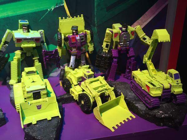 So this past weekend (Feb 14-15) was the annual New York Toy Fair, where you companies of all sizes (mostly big) show off their projects intended for release throughout the year. Whereas in 2014, Hasbro had a hodgepodge of Age of Extinction and Generations toys to showcase, to somewhat mixed reviews (due to the First Edition Prime for AOE flopping a bit) – this year, rolling into Wave Two of the wildly successful Combiner Wars line, Hasbro showcased their continued plans to delight both G1-era Fans and New Fans with Wave 3 of the line and a new Titan Class toy that rivals Metroplex of 2013….a six member (each voyager sized) Devastator!! Also continuing their support of the ever popular IDW comic series More Than Meets The Eye and The Transformers, we got our first looks at Leader Class Ultra Magnus, complete with a transforming Minimus Ambus!