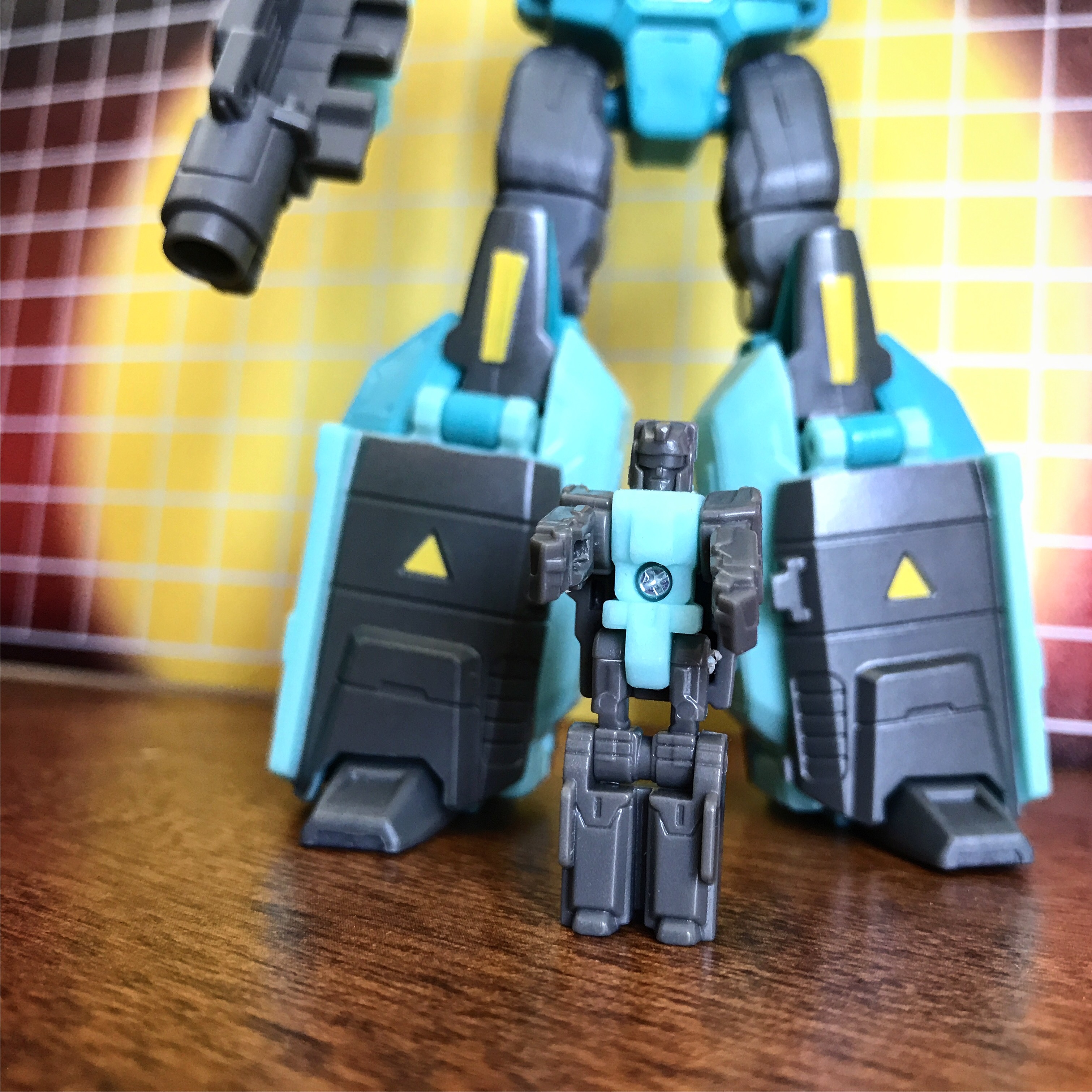 Kup’s Titan Master partner is Flintlock. NOT Recoil, who was his Target Master. They sneak “Recoil” into his bio on the back of the card, but I prefer the two characters to be stand alone partners and not related or linked in anyway. Flintlock is a Titan Master, Recoil is a Target Master. Anywho, Flintlock looks just like Recoil. It always amazes me how much detail is sculpted into these tiny little dudes. I almost prefer them not painted as I think you lose some of the detail if you’re tossing paint on them.