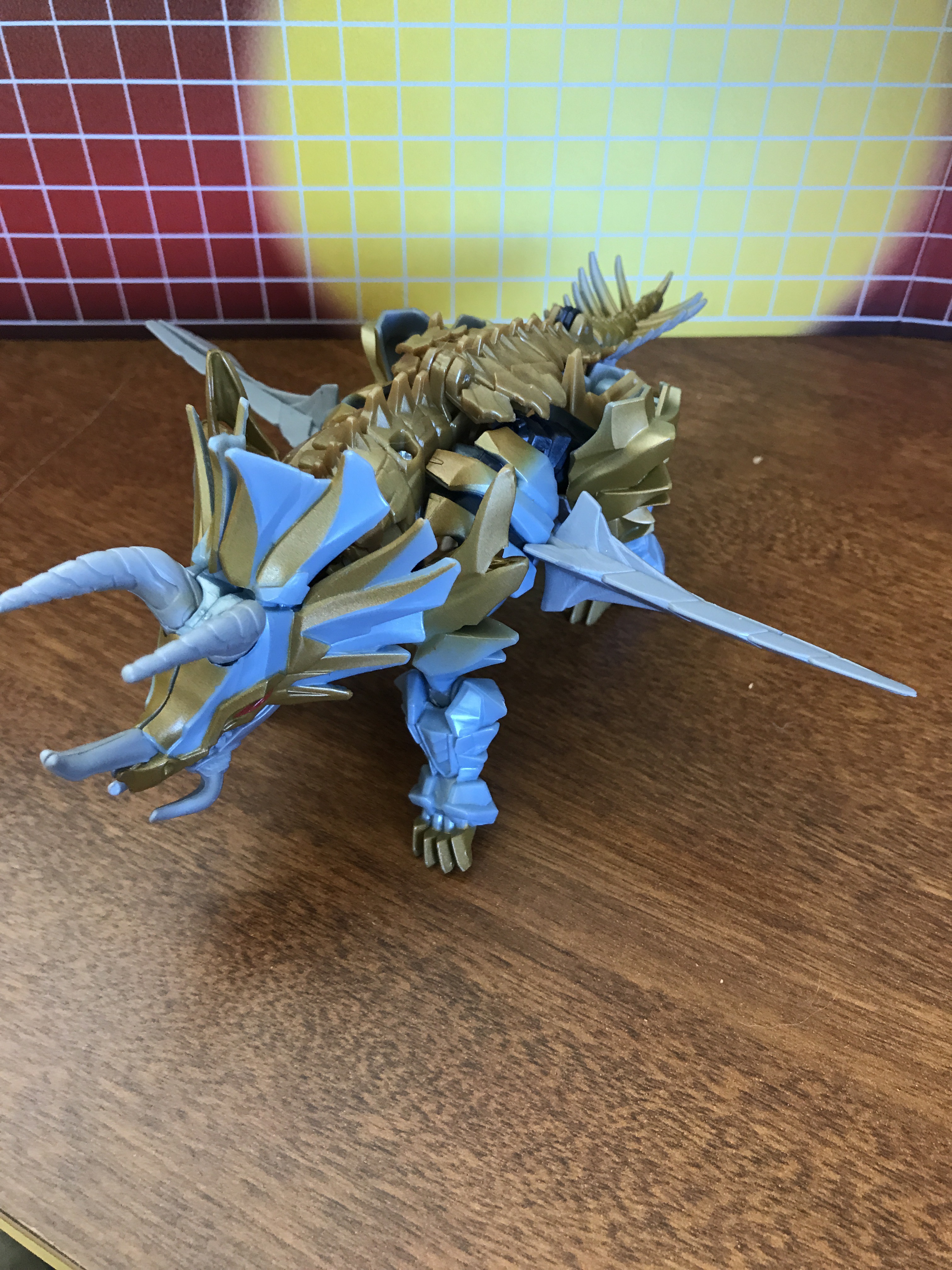 The only thing I don’t like about this mold in dino mode is the weapon storage. I know it’s supposed to be for more collateral damage when he’s charging or whatever, but it looks goofy and unnecessary.