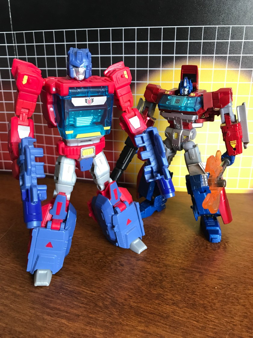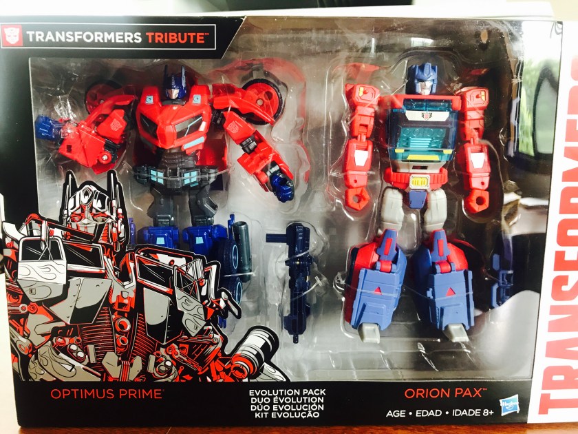 This is a fun set. In the first of what I’m hoping is a few “tribute” sets, we get two really nice figures designed to represent the ascension of Orion Pax into Optimus prime!