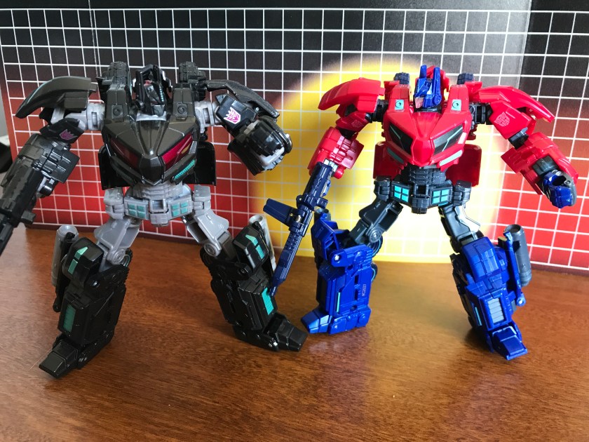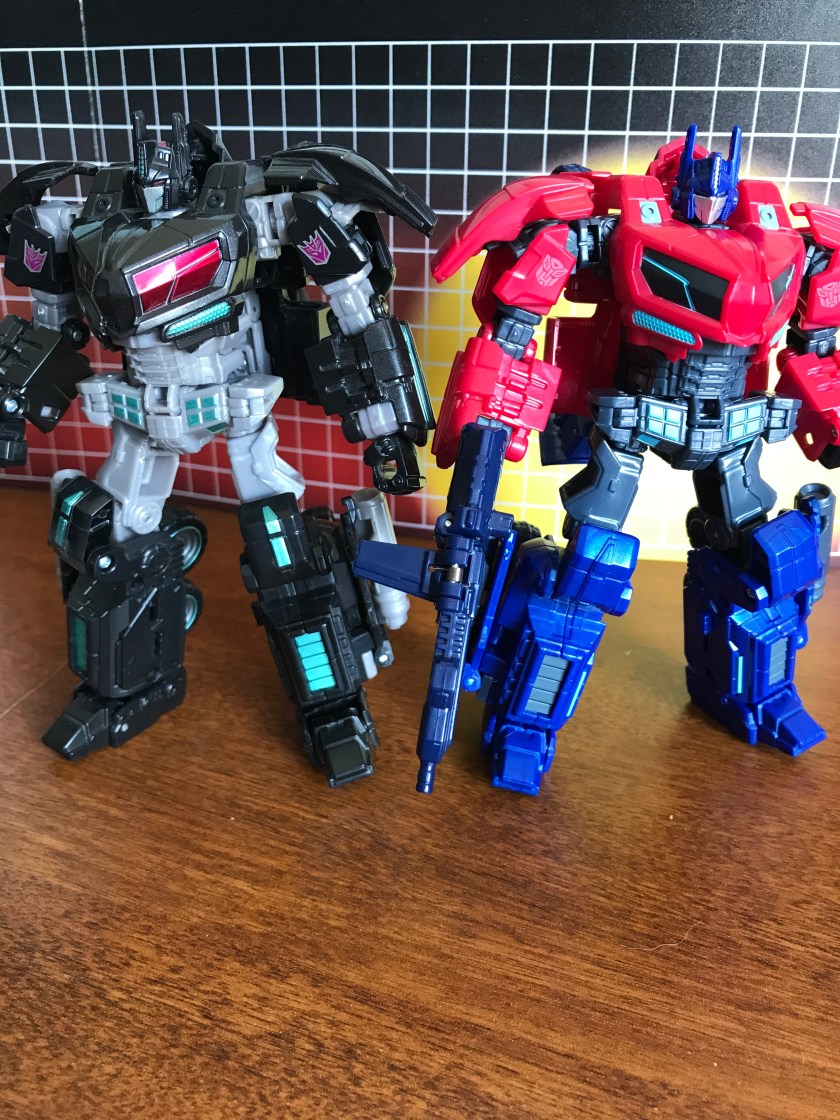 Again, he works a much more bulky, contrast to Orion Pax, and together they look very nice side by side.