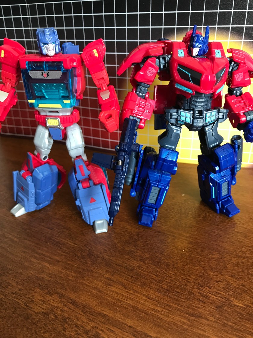 The War For Cybertron Optimus Prime toy is notoriously complex in terms of transformation, however, the complexity results in a rather spectacular, screen accurate design. And with this set, it also represents a nice, bulked up contrast to the Orion Pax figure.