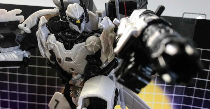 So here’s Nitro (or, Nitro Zeus in the movie…for some reason). He plays a “prominent” role for the Decepticons (in that he doesn’t immediately get murdered by the Autobots *cough, Onslaught, cough*) and so, like Barricade, we got a new toy of him. NEAT!