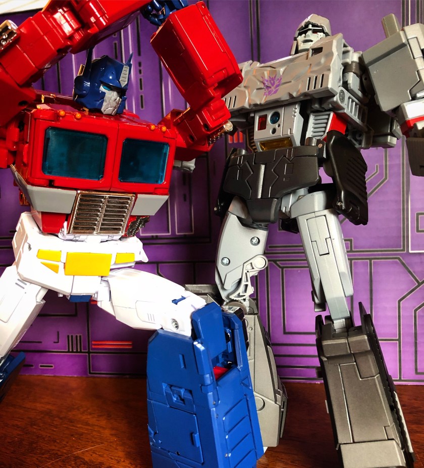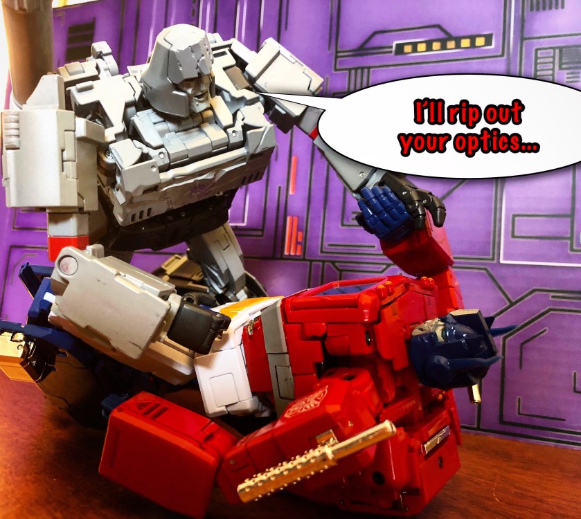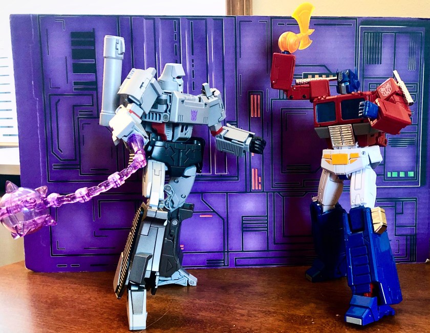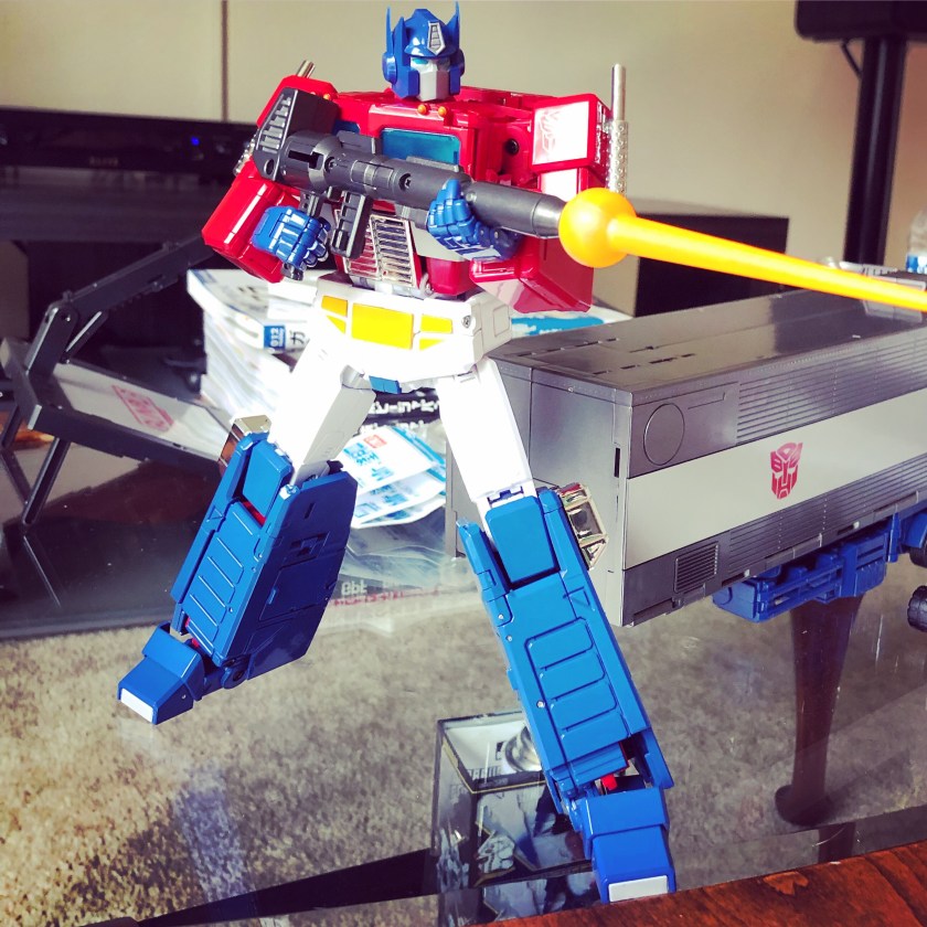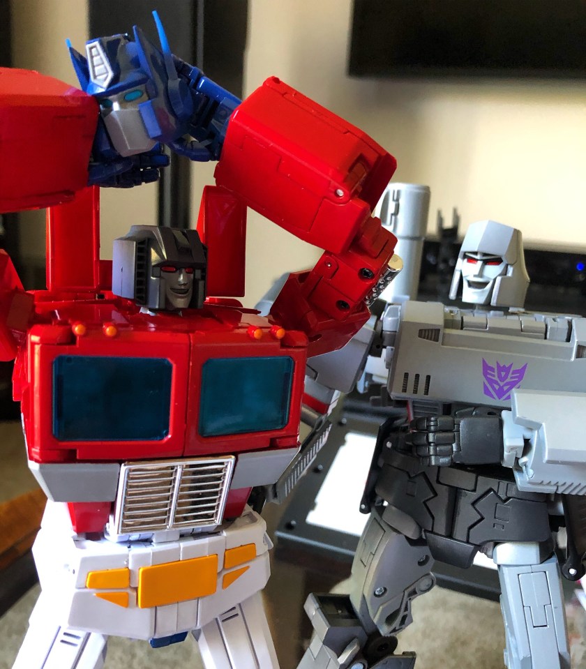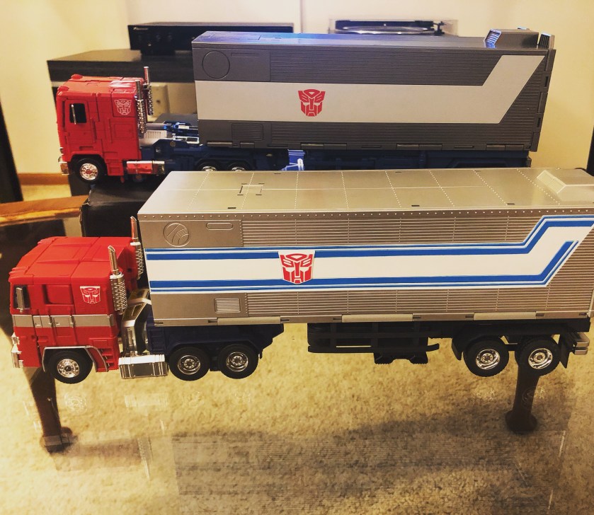 As a toy, Optimus/Convoy features superb articulation, joint strength, balance and play-value, with blast effects for his rifle/backpack, opening cab doors, fully articulated fingers/hands, and the myriad of accessories and features with the Trailer. While MP-10 was all of these things as well, I find it hard to not appreciate this new version that coincides with the animation accuracy they’re going for. Okay, fine, I love it. I’ll admit it. He looks perfect with Megatron and the rest of the MP Autobots as well. The biggest deterrent here is the price tag. Convoy Ver. 3 is going to run you about $300 easy. Depending on the retailer and your country’s currency rate, that could be higher. That’s a tough pill to swallow considering how dense the Optimus Prime market is. I can only say that this is the very top of the line for the character. If Prime is your guy, I think you’ll find the money well spent. If not, MP-10 and his infinite color selections are still most excellent. For me, I’m happy to have picked this up, and while MP-10 will always have a place in my collection, THIS is my Optimus Prime.