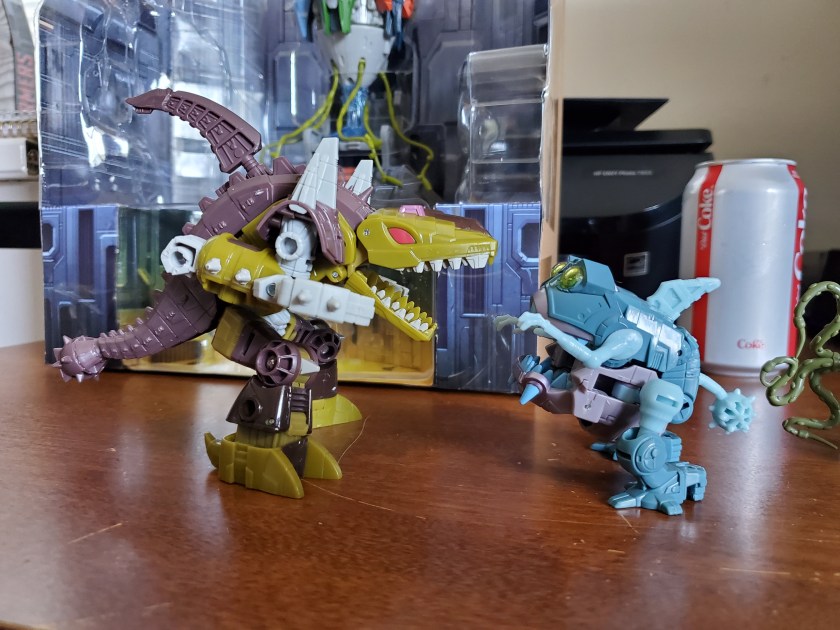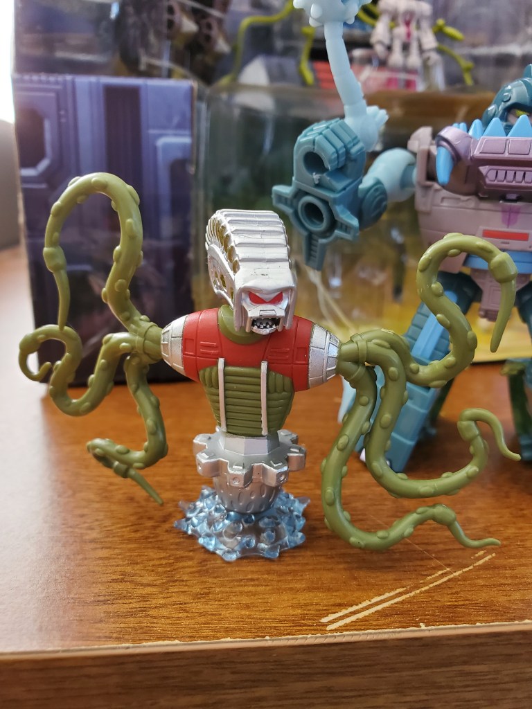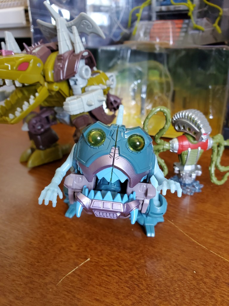 Now we’re starting to get into the actual transforming toys, beginning with the Sharkticon. While he’s a repaint of the Titan’s Return toy, he features a new blue-green focused color scheme, and has metallic paint apps added. He’s already a fantastic little toy so I’m happy he’s included!