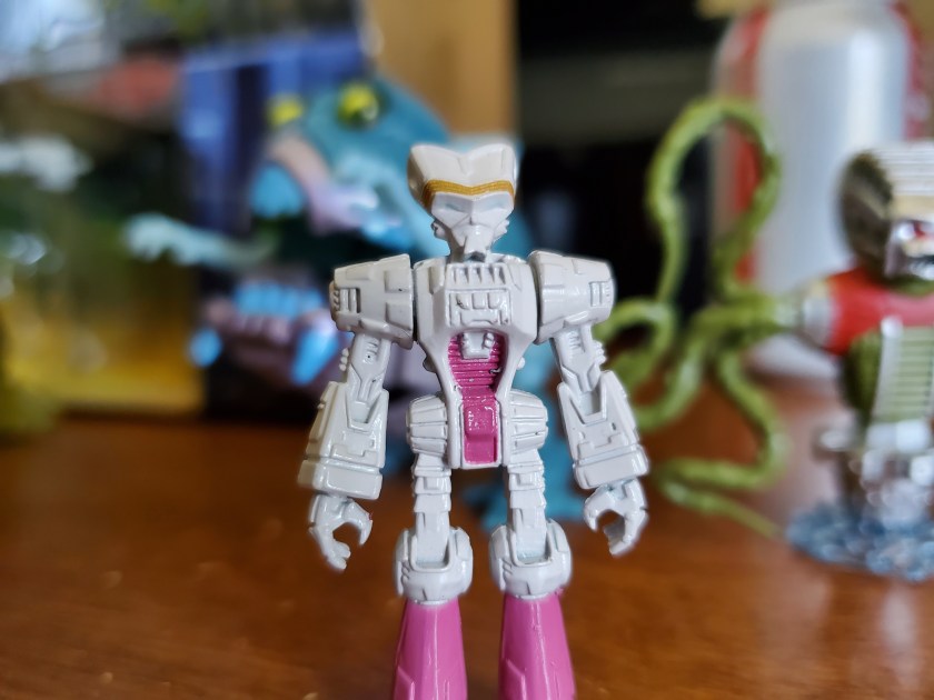 Kranix is the robot scientist seen in The Transformers: The Movie. While he’s a very basic, static, plastic figurine, he features excellent detailing, clean paint apps and, while not very visible in pictures, he even has light blue eyes painted in.