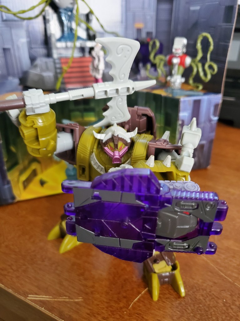 Oh man, I can say, without a doubt, the Bailiff is my favorite part of this set. The Quintessons are fun, but this dude is all sorts of excellent! A re-tooling (Pre-tooling?) of the soon to be released Earthrise Allicon, Bailiff features a new headsculpt and paint scheme that really makes him pop. His transformation into beast mode is a lot of fun too, I’ve toyed around with him non stop for a few days now and truly enjoy his design.